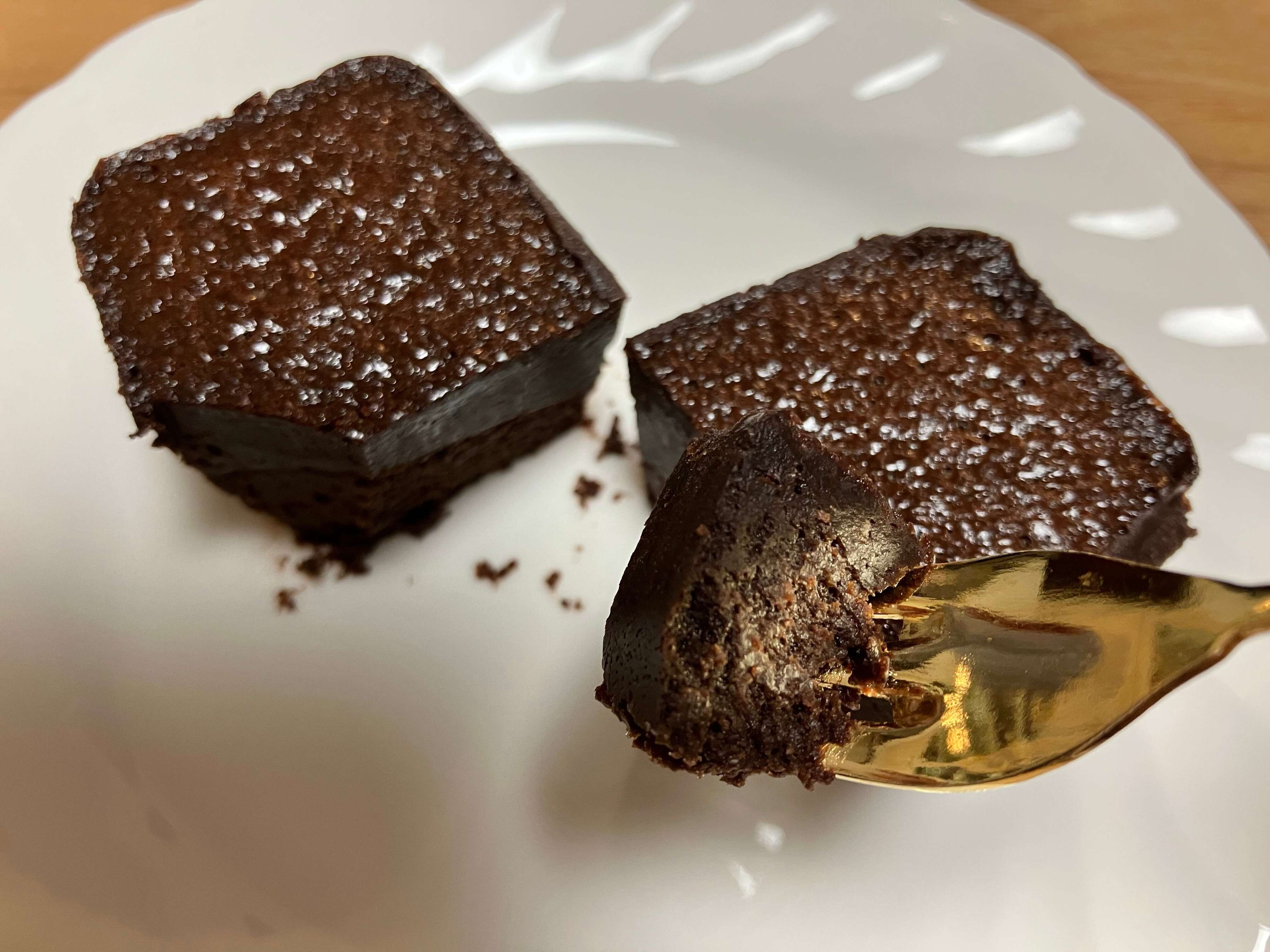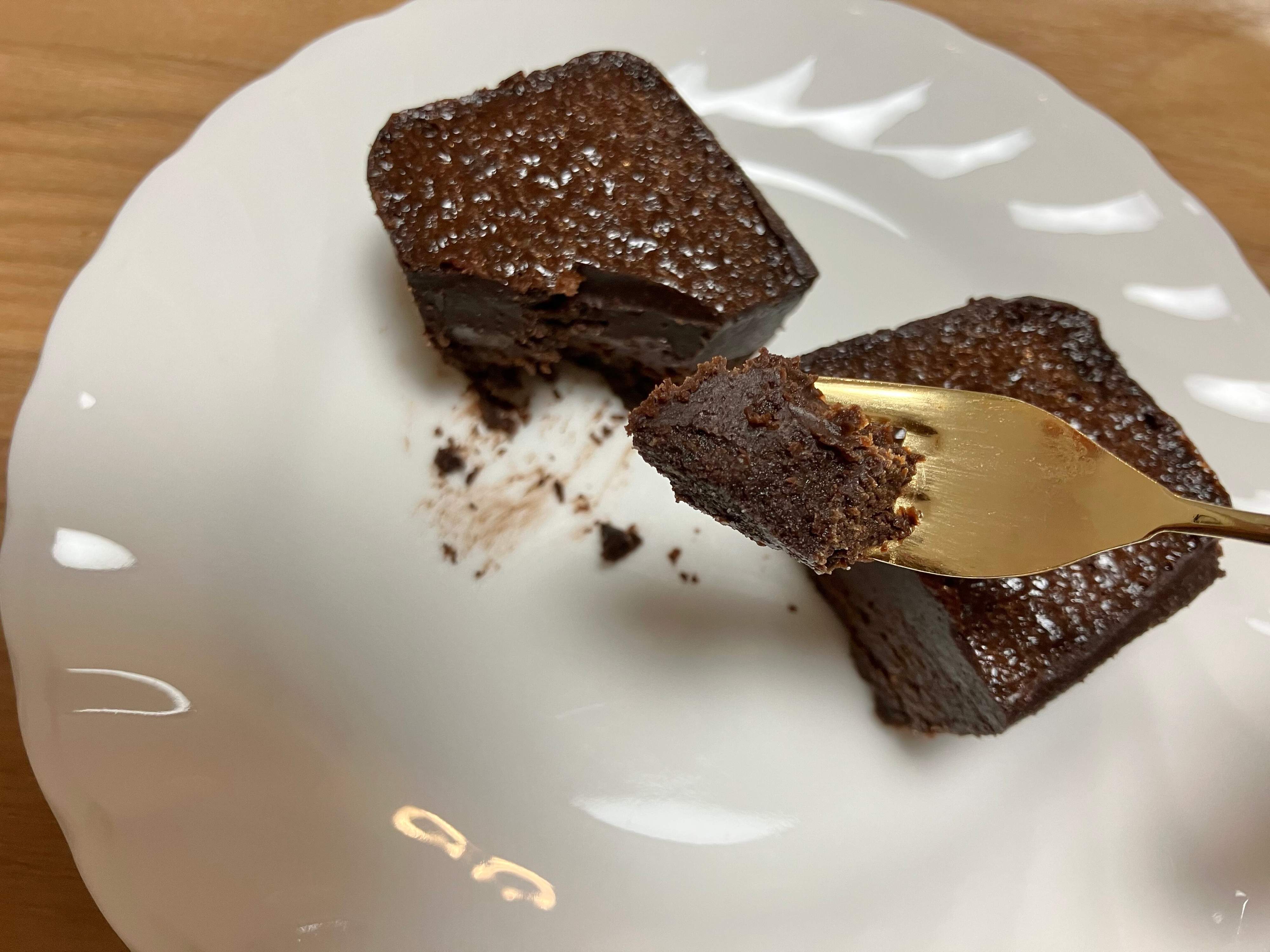 2つ一緒に食べると生チョコのような食感と、濃厚なチョコブラウニーのような食感を、一緒に味わうことができます。