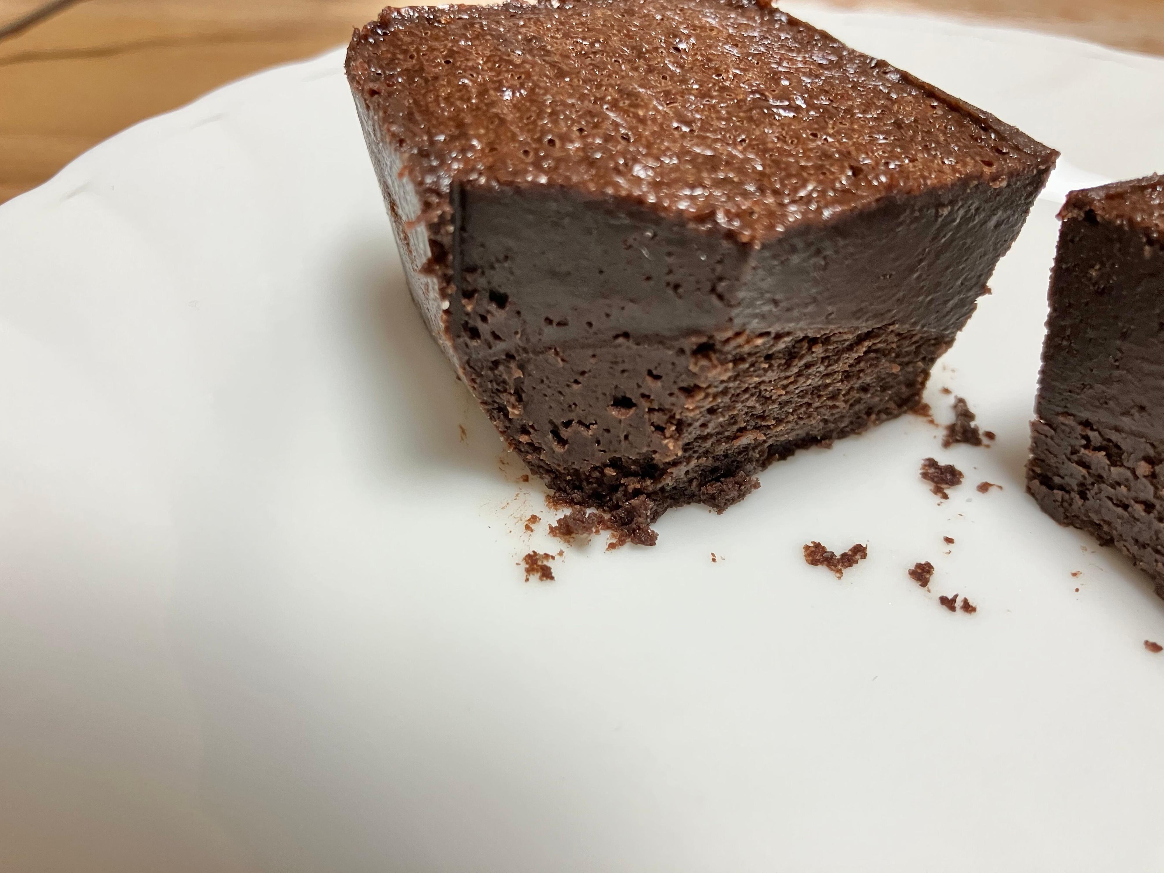 上のチョコケーキの部分が生チョコのようで美味しいので、全体的にしっかりと2層になっているので嬉しいです。