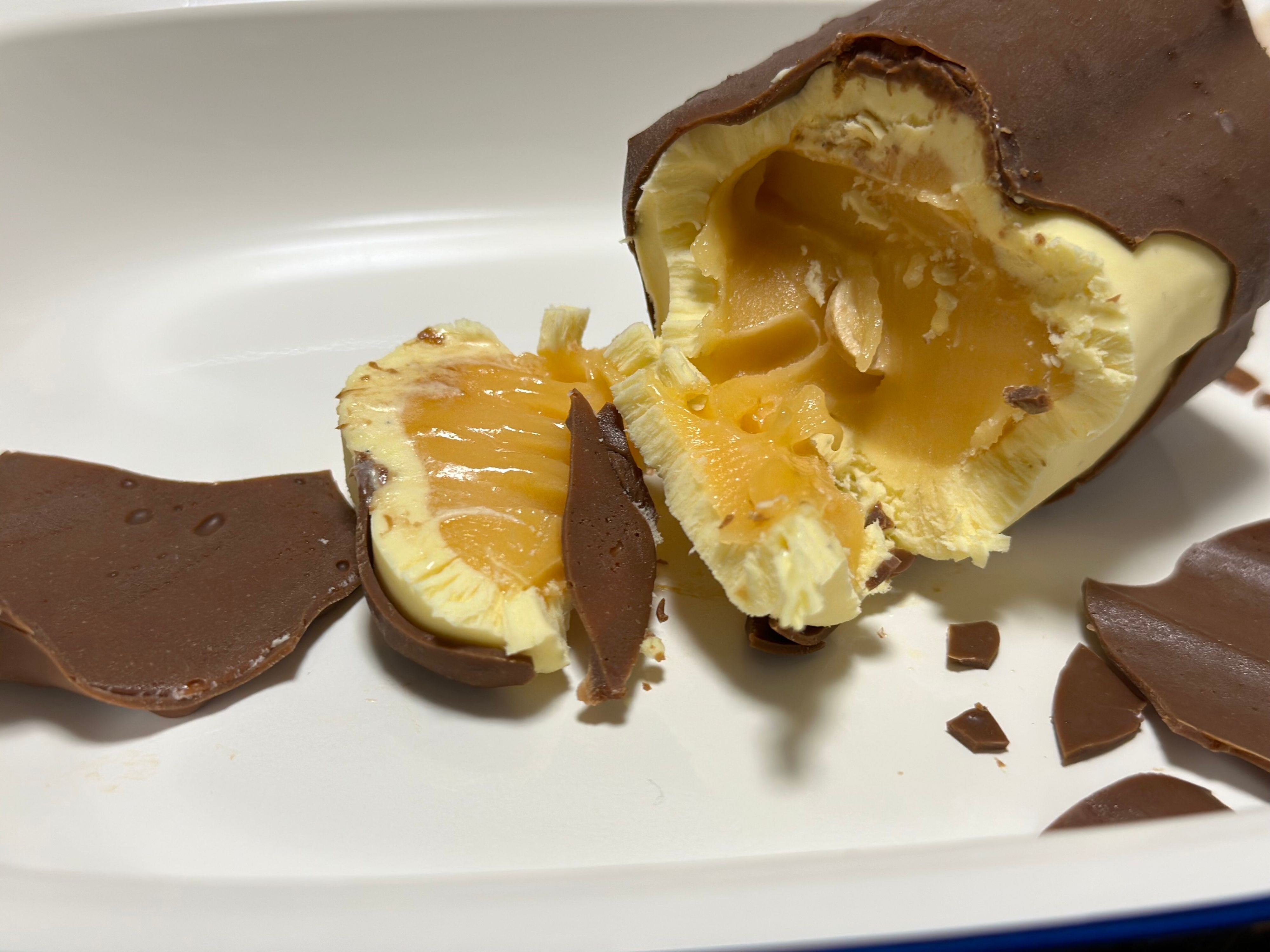 カラメルのちょっとほろ苦いパリパリと、焦がしカラメルのチョコの風味が最高すぎて、このチョコの部分一生食べていたいくらいおいしいです…!