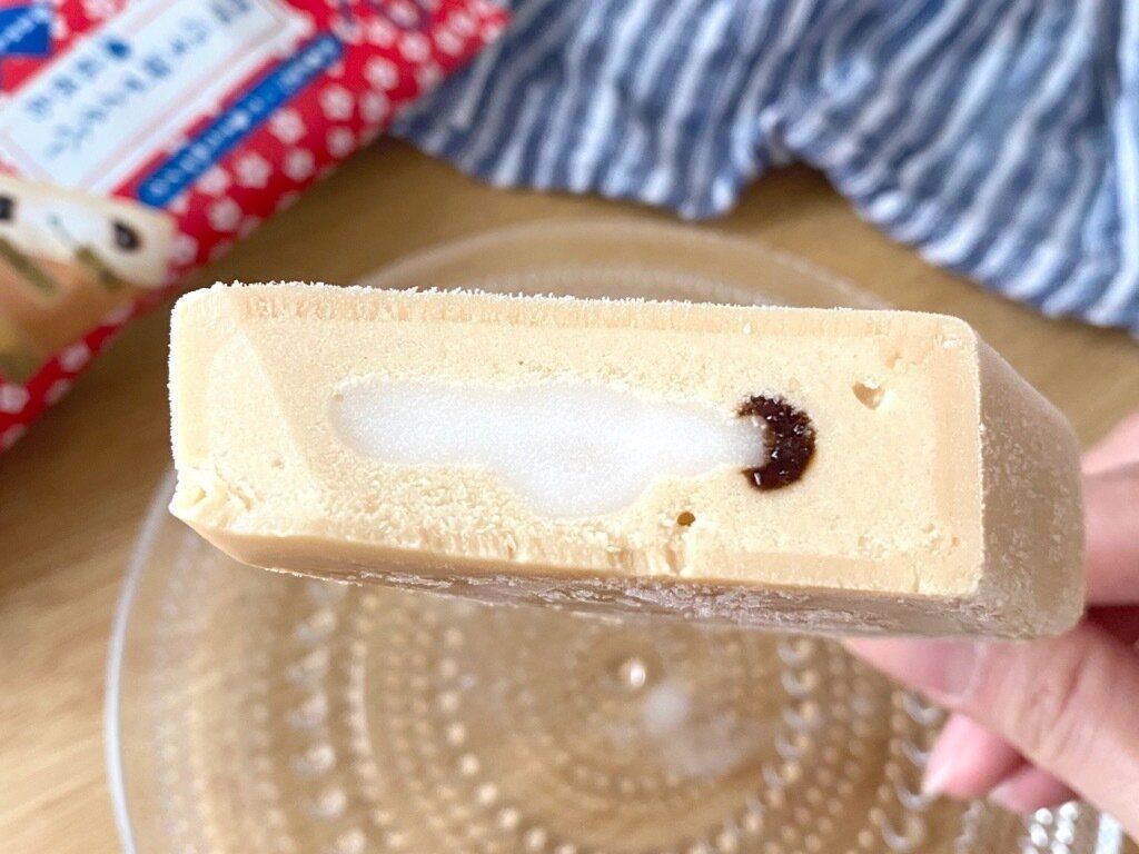 外側のアイスキャンディーは、きな粉の風味がありつつもさっぱりとした味わい。内側のアイスはきな粉の風味が強く、スーッと口どけよく溶けていきます。同じきな粉ですが、それぞれ違う味のグラデーションを楽しめます。