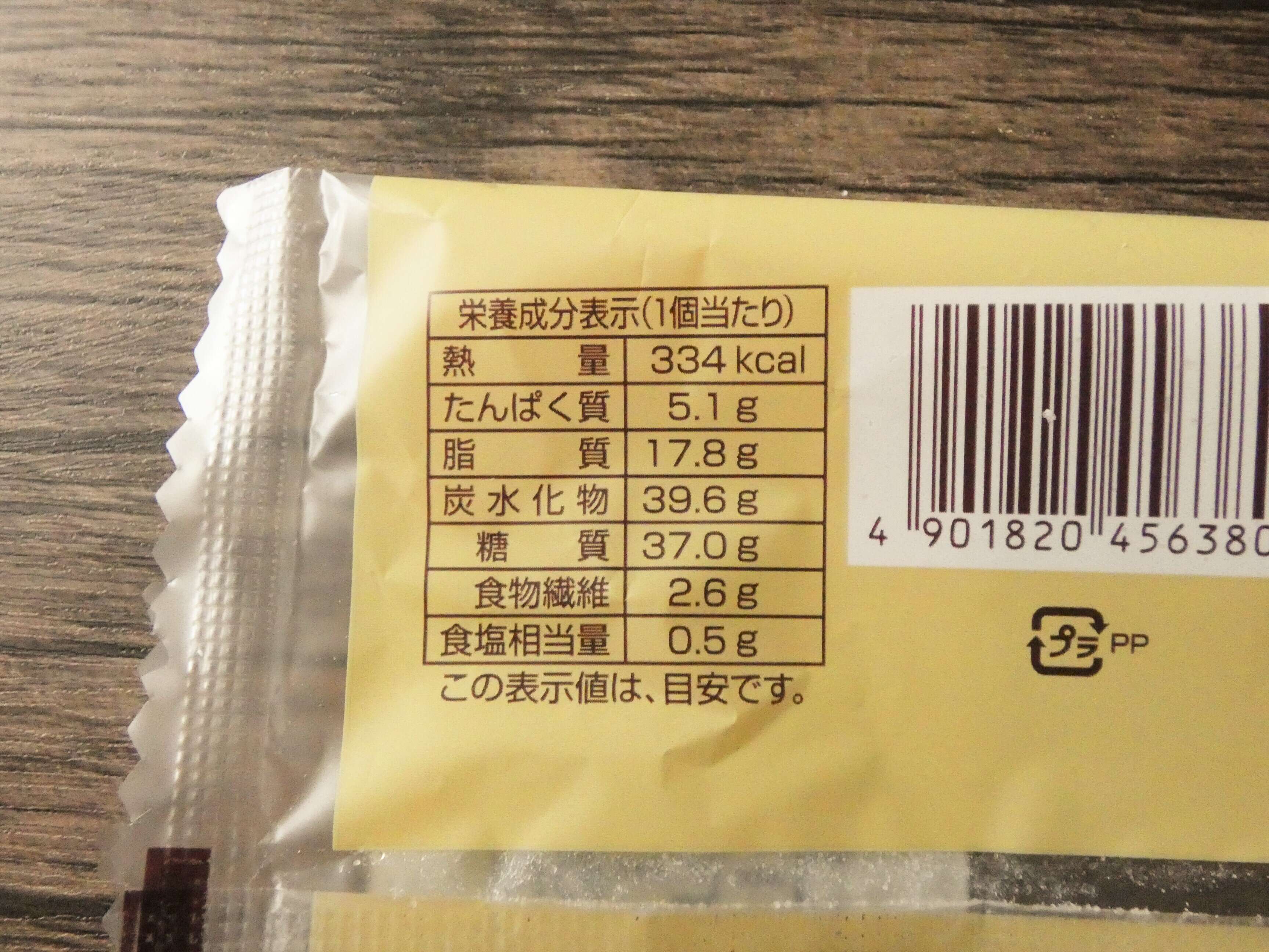栄養成分表示を見ると1個のエネルギーは334kcal。