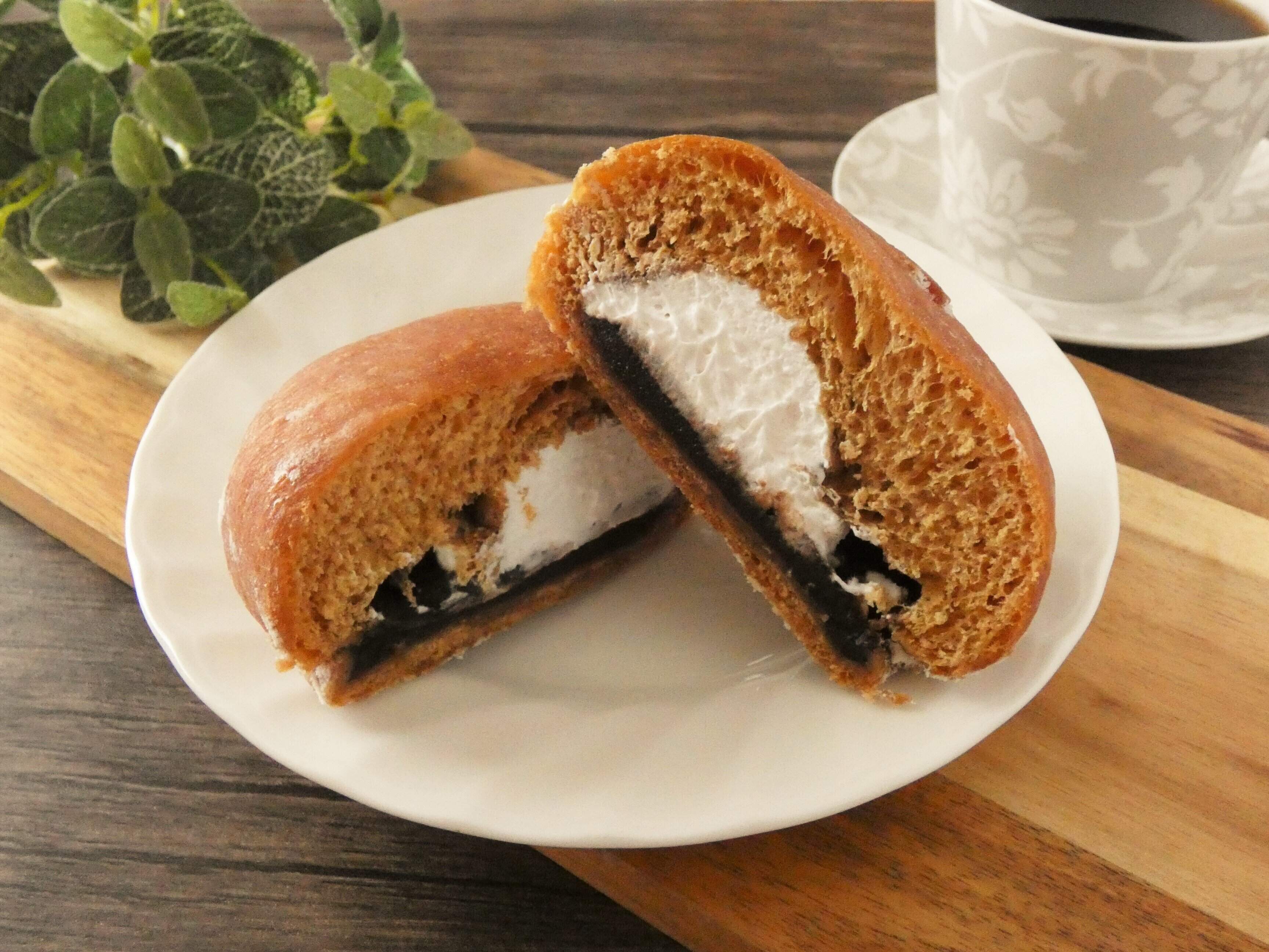 カットするとミルクホイップがぎっしりたっぷりです。ドーナツはしっとりふんわり食感で、ミルクホイップはふんわり軽くてコクがありクリーミー。コーヒーあんはしっかりした甘さですが、コーヒーの苦みと香りをしっかり感じます。ミルクホイップとコーヒーあんの組み合わせはやみつきになるおいしさ!リピ決定のスイーツパンなので、ぜひお試しください。