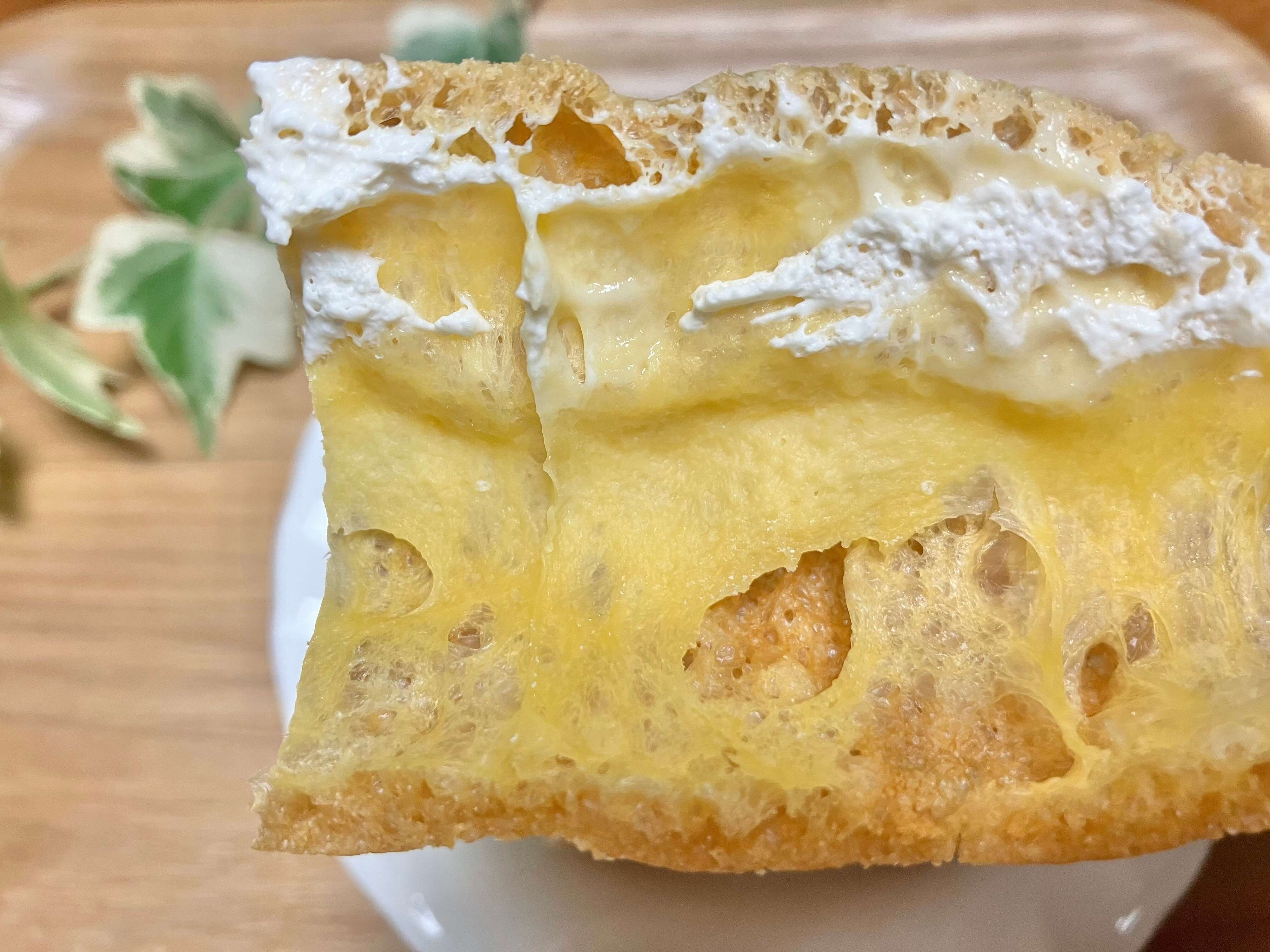 半分に割ってみると、中にもぎっしりとクリームが詰まっていることがわかります。