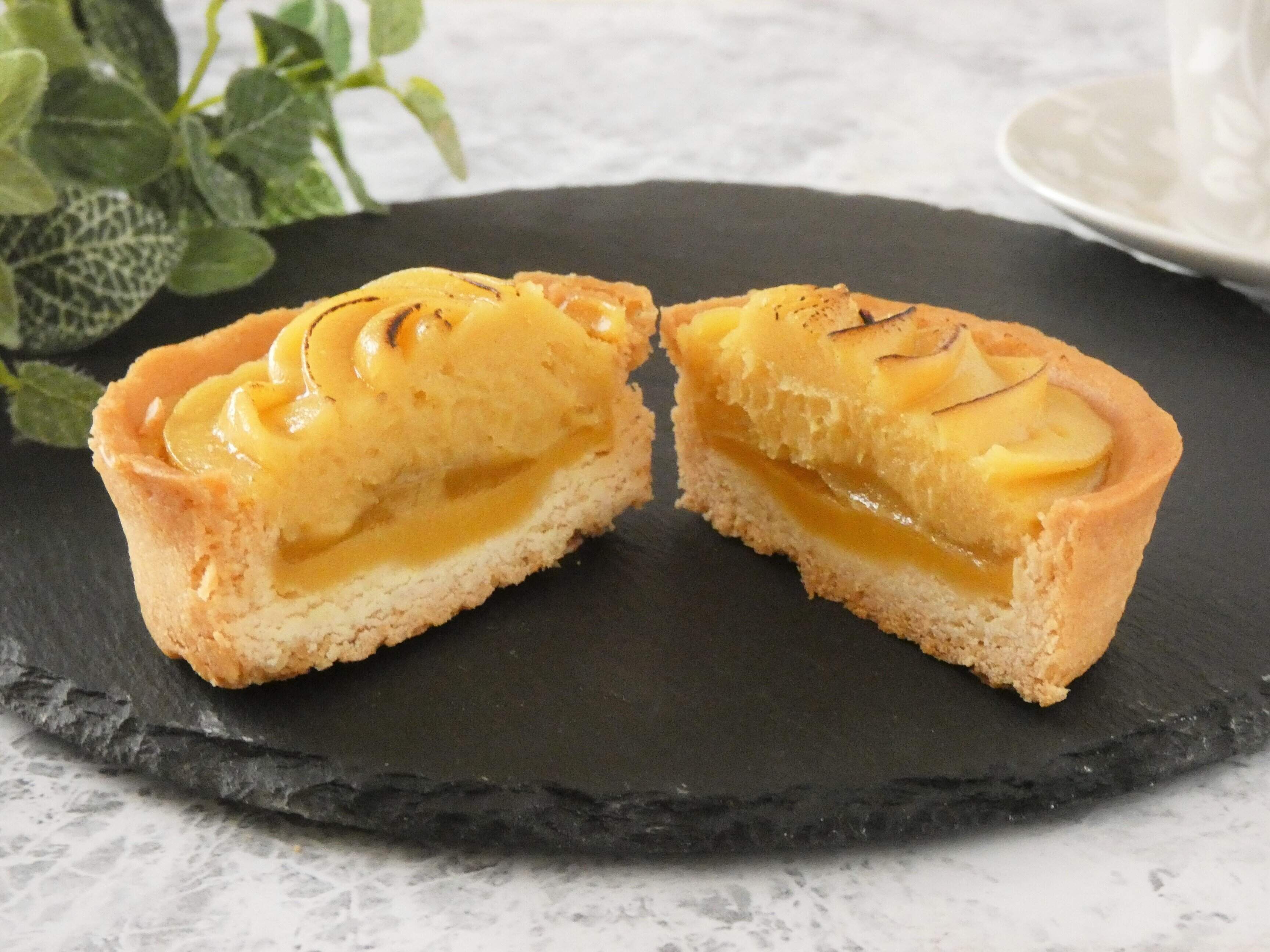 ねっとり濃厚な味わいの台湾蜜いもをたっぷり使ったタルト。タルト生地にさつまいもカスタード、さつまいもジャム、さつまいもペーストを絞り、表面は炙ってあります。