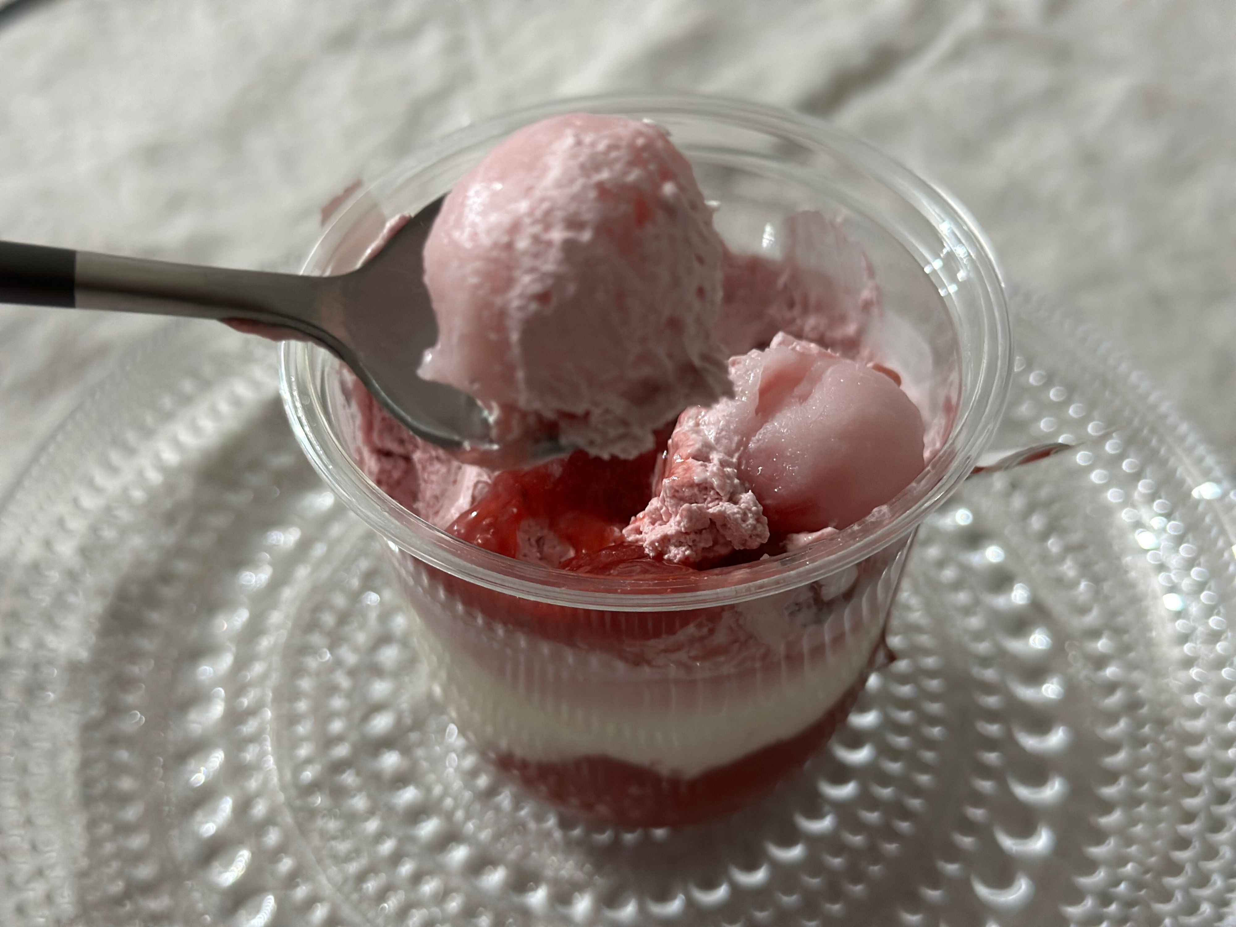 そして驚いたのは一番下の真っ赤な層。普通の苺ゼリーだと思って食べてみて驚きました。こちらは普通のゼリーではなく「苺葛ゼリー」。プルンプルンと弾力と歯応えのある食感が新鮮で、お味も甘すぎず酸味も強すぎず、パフェをさっぱりと締めくくるのにぴったりなおいしさでしたよ。