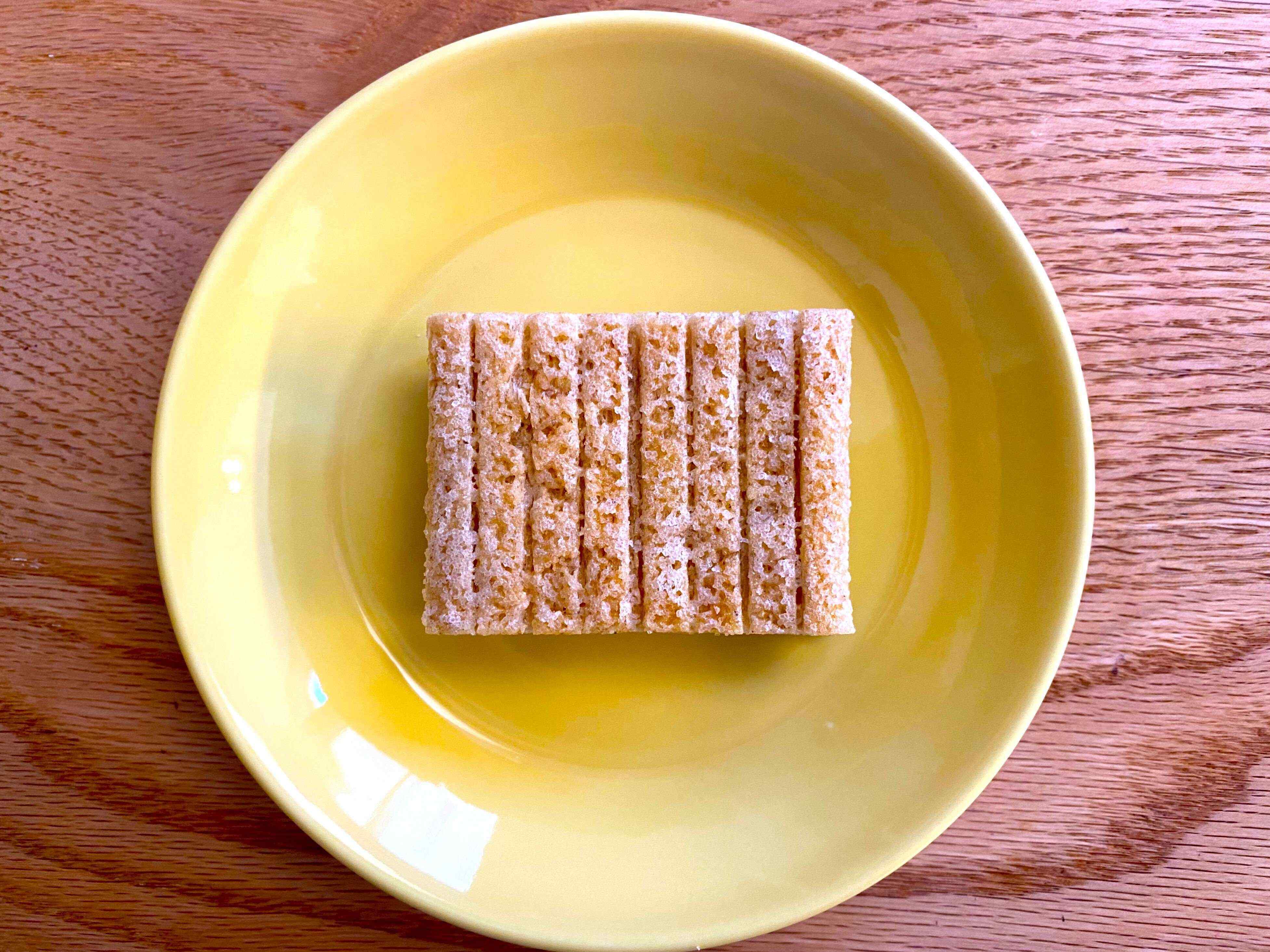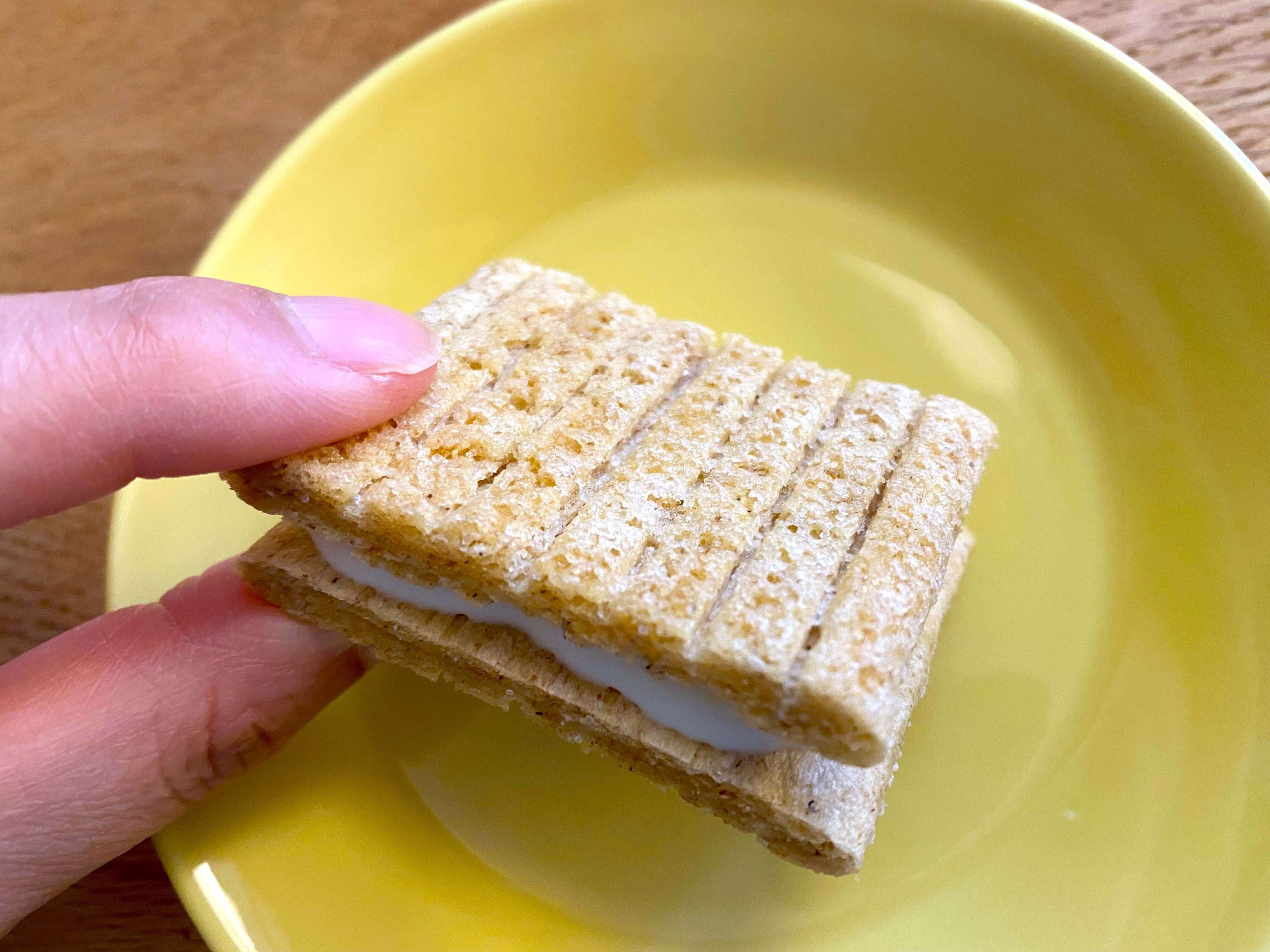 袋の中で割ると、粉も飛ばずきれいに割れて一口サイズに。オフィスでのおやつにもぴったりです。