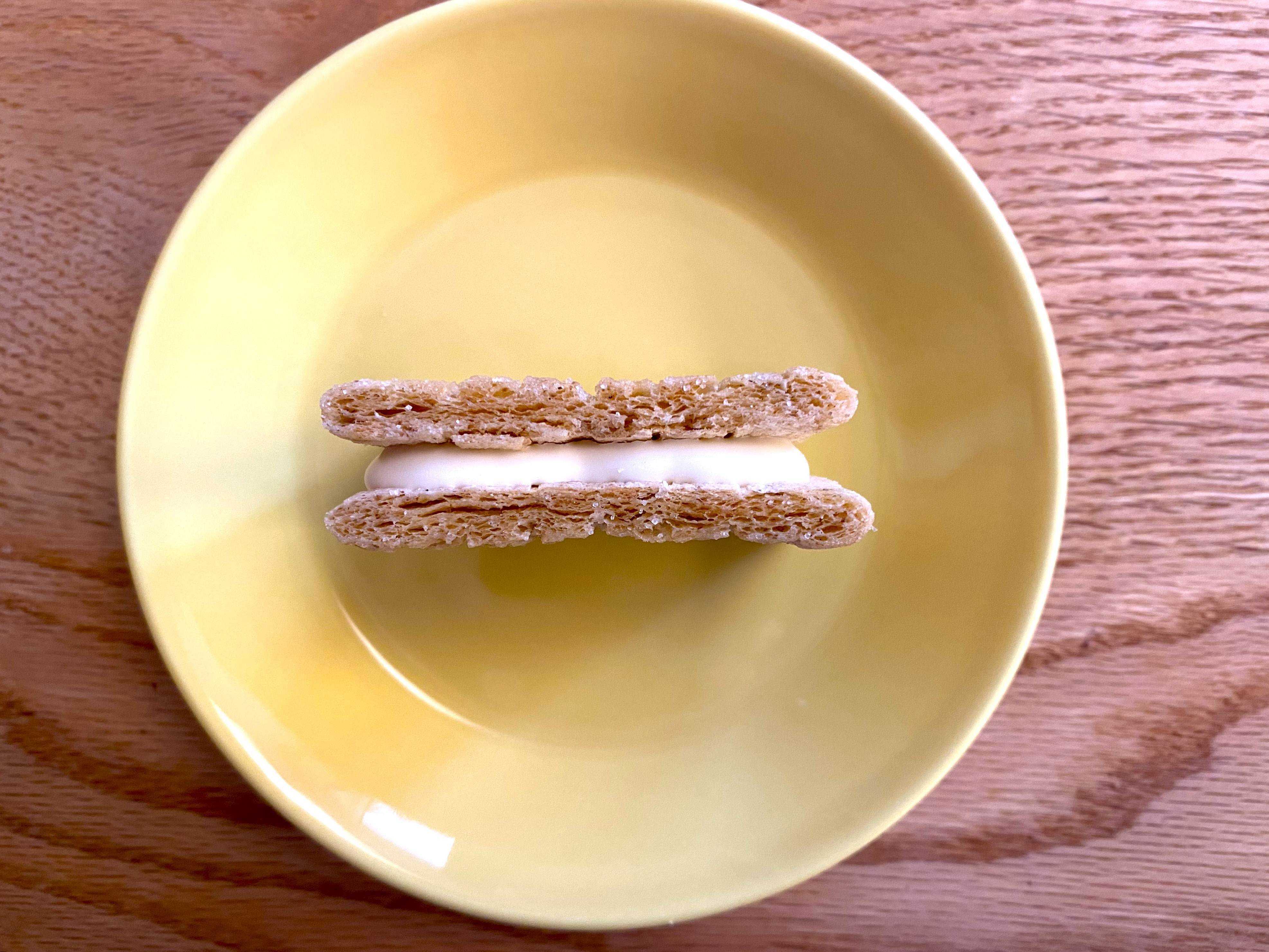 ライ麦や全粒粉が香ばしいシリアル生地は、シュガーバターでこんがり焼いてあり見事なまでのサクサク感!