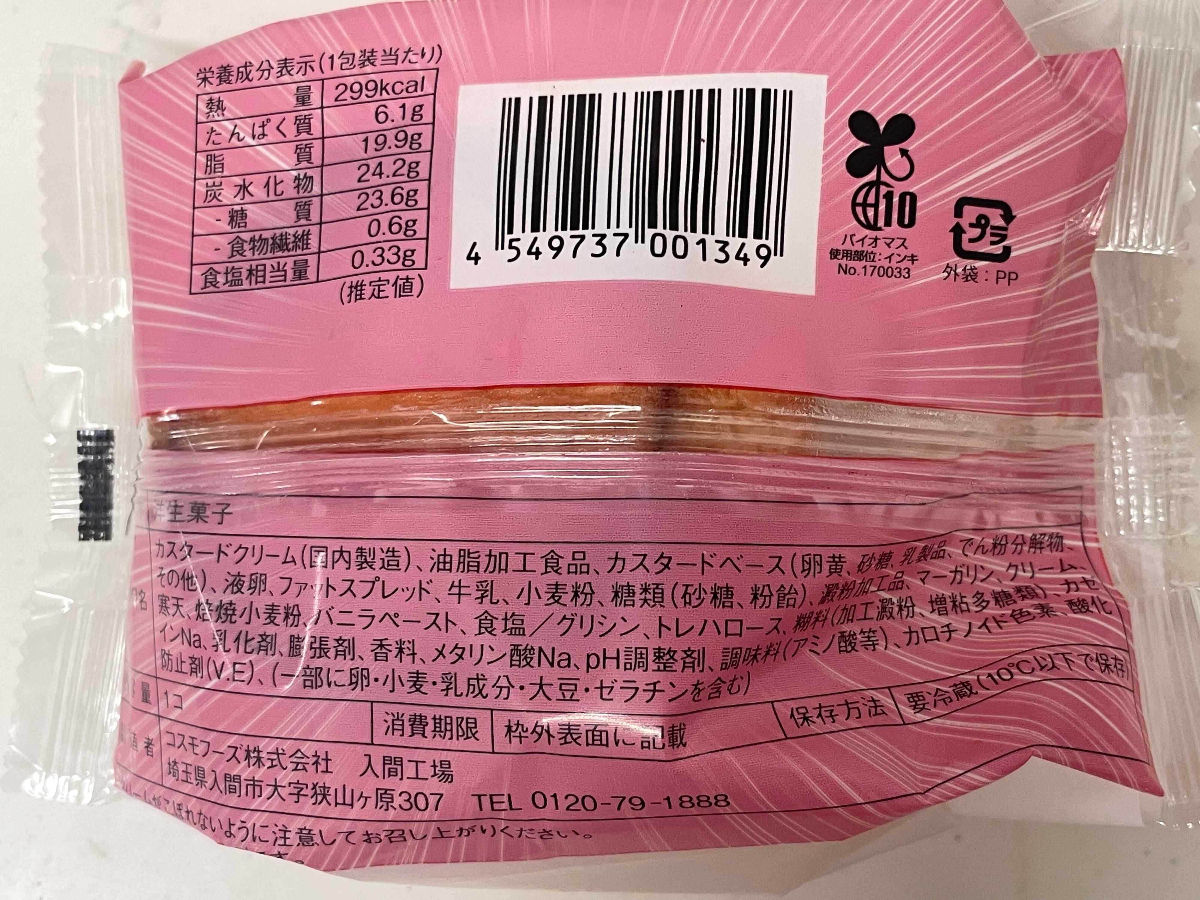 原材料を見ると、カスタードクリームが一番多く入っていることが分かり、テンション上がりました♪