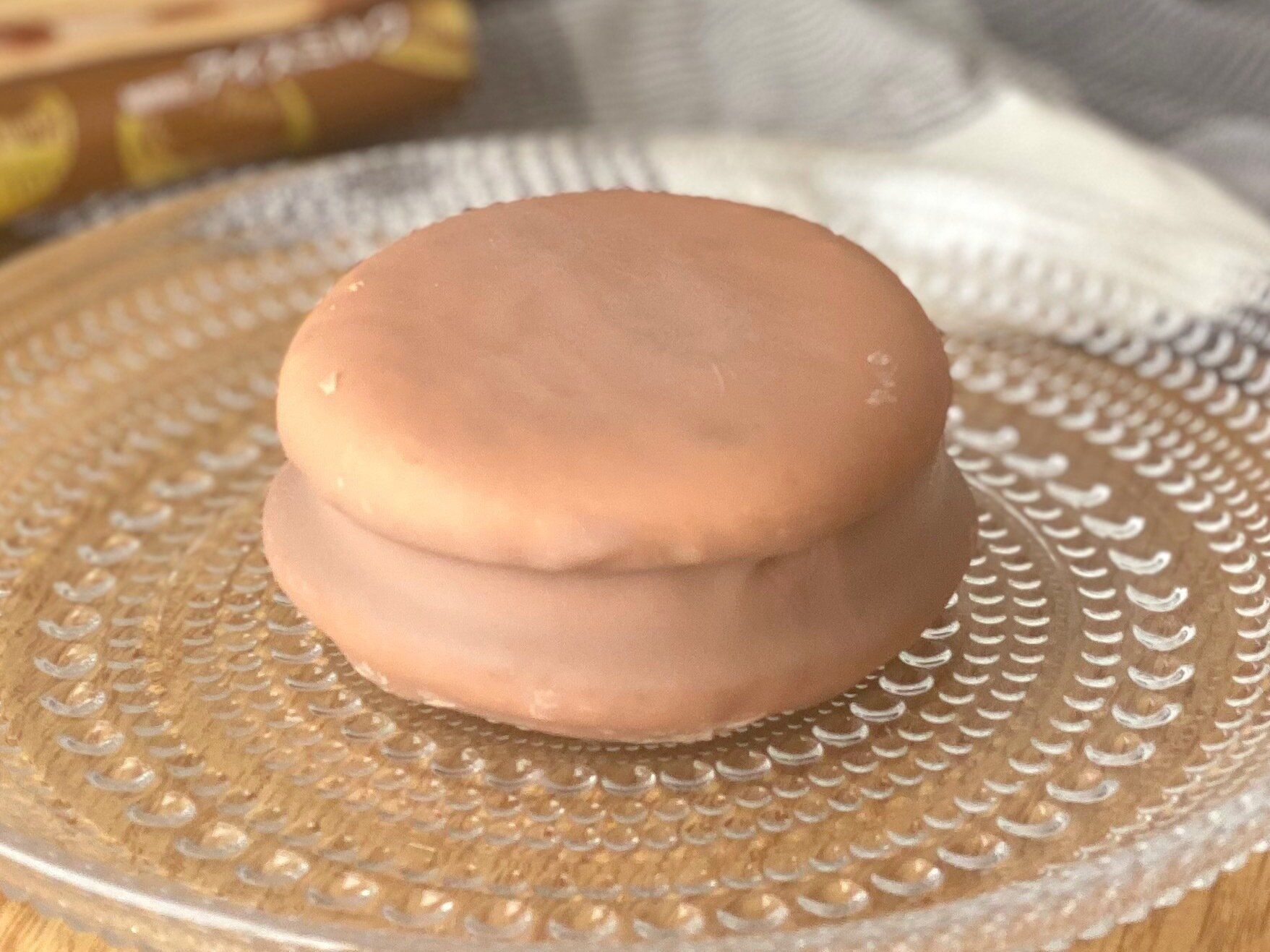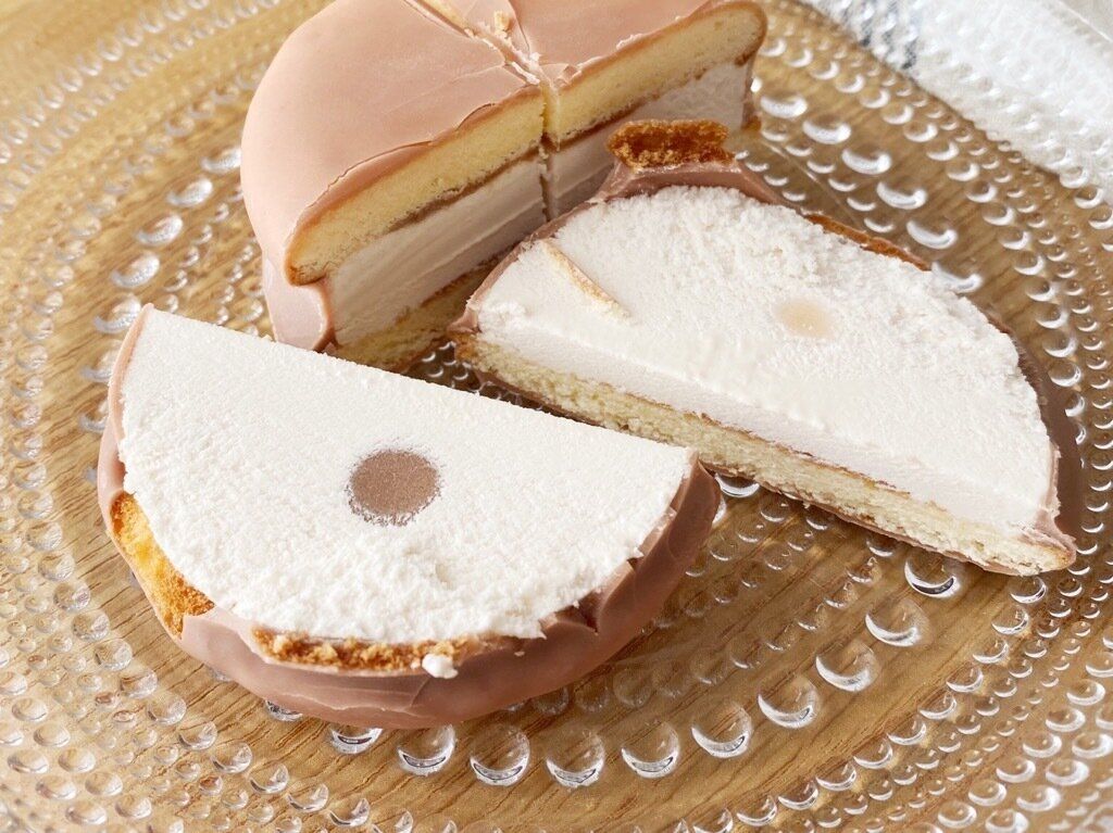 コーティングのチョコレートはパリッと弾け、すぐに口どけよく溶けてアイスと混ざり合います。生地はチョコパイのようなふんわり感はなく、しっとりかための食感。なめらかなアイスと相性抜群です。
