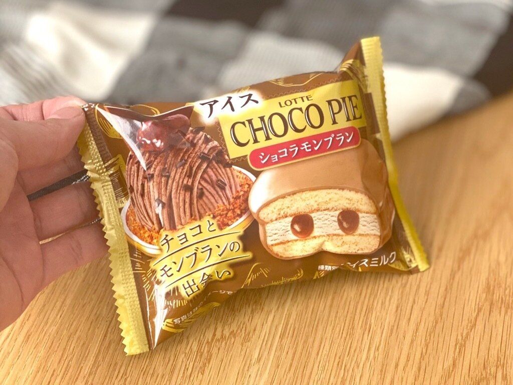 モンブランの味を存分に楽しめるチョコパイアイス「ショコラモンブラン」。さまざまな食感を楽しめる濃厚なアイスでした。小さめサイズですが満足度が高いのでオススメですよ。