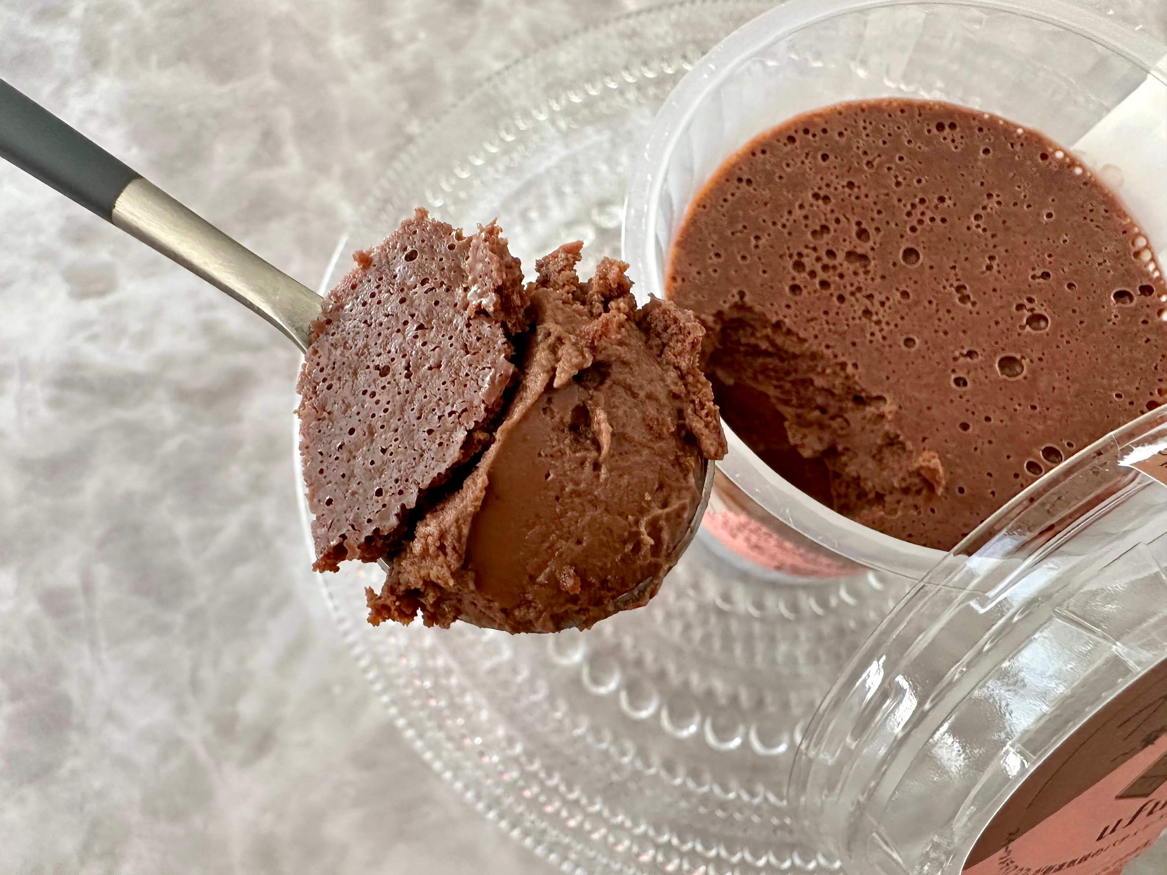上層はチョコスフレ、下層はチョコプリンの2層の味わいが楽しめるスイーツ。