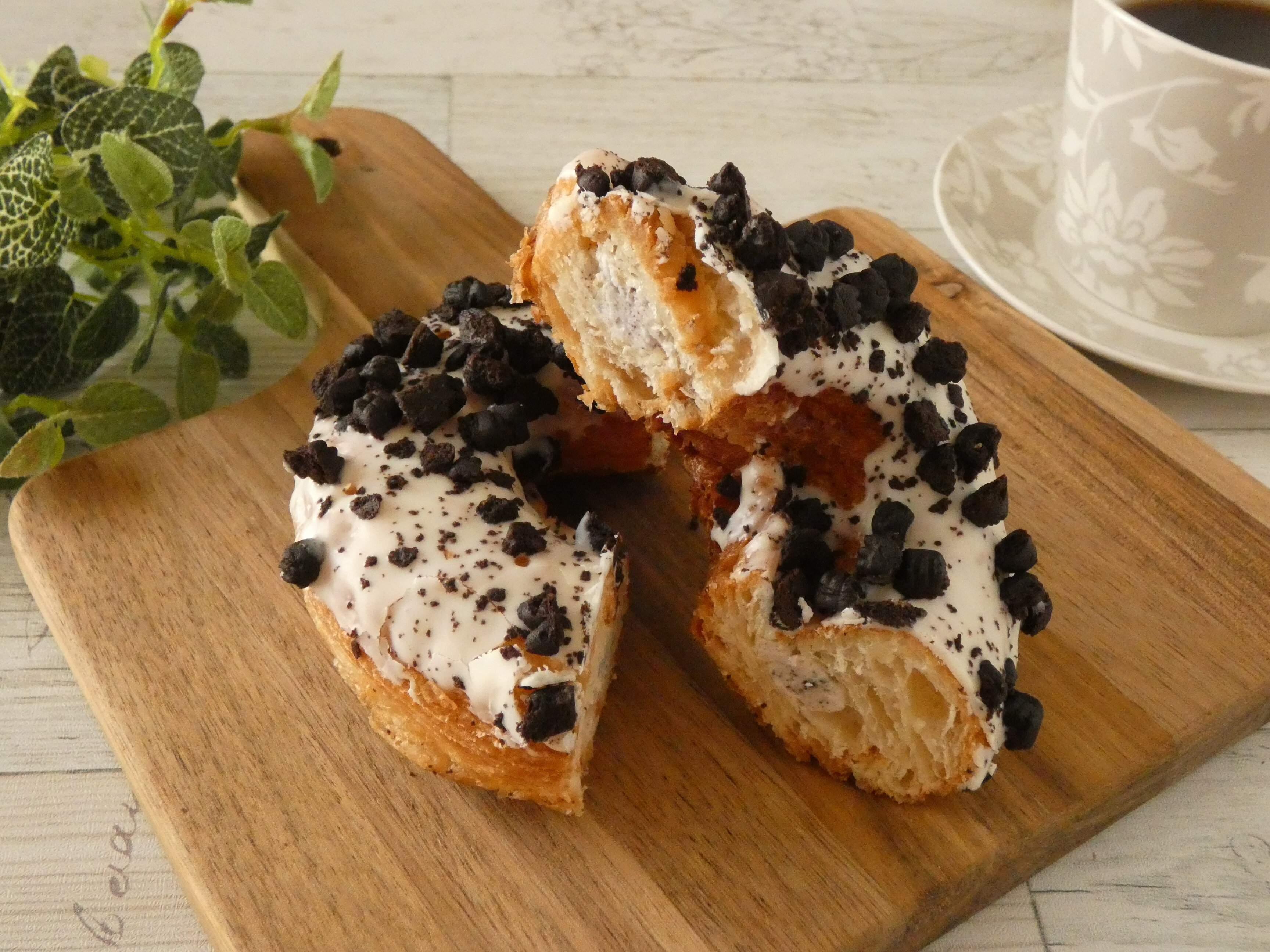 カットするとクッキークリームがたっぷり入っています。クロワッサン生地はふんわり軽い食感で、クッキークリームはとろーり。クリームに入っているクッキーのザクッと食感がアクセントになって楽しいです。