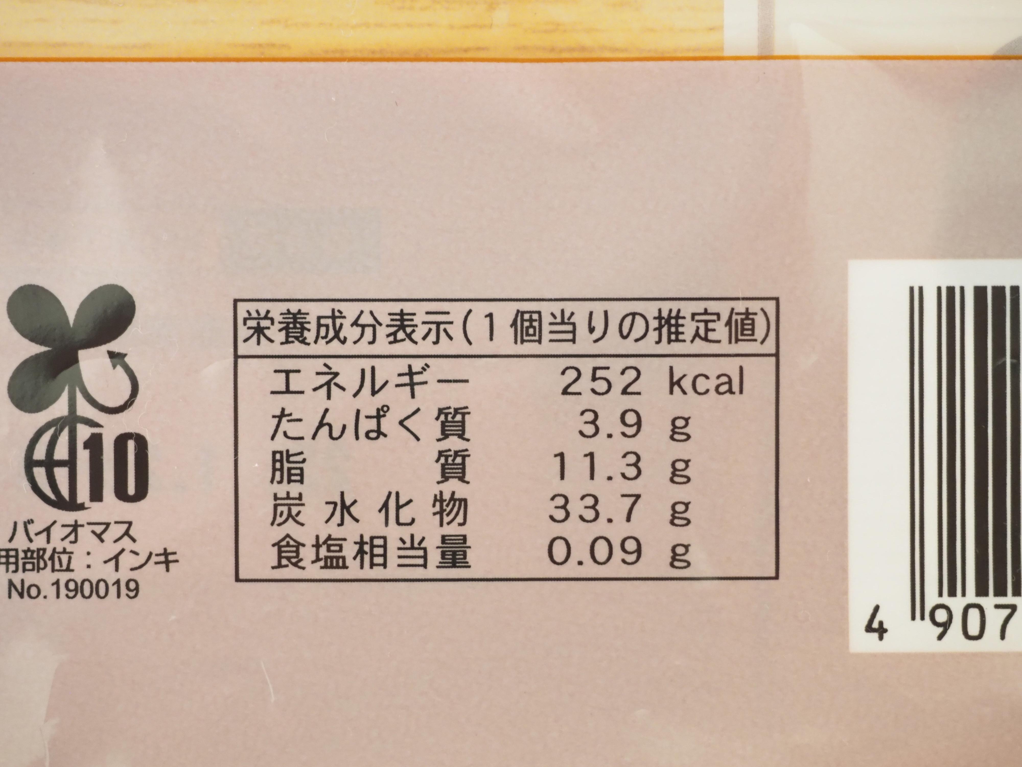 カロリーは252kcalです。なお今回購入したものの消費期限は、購入日を含む4日でした。