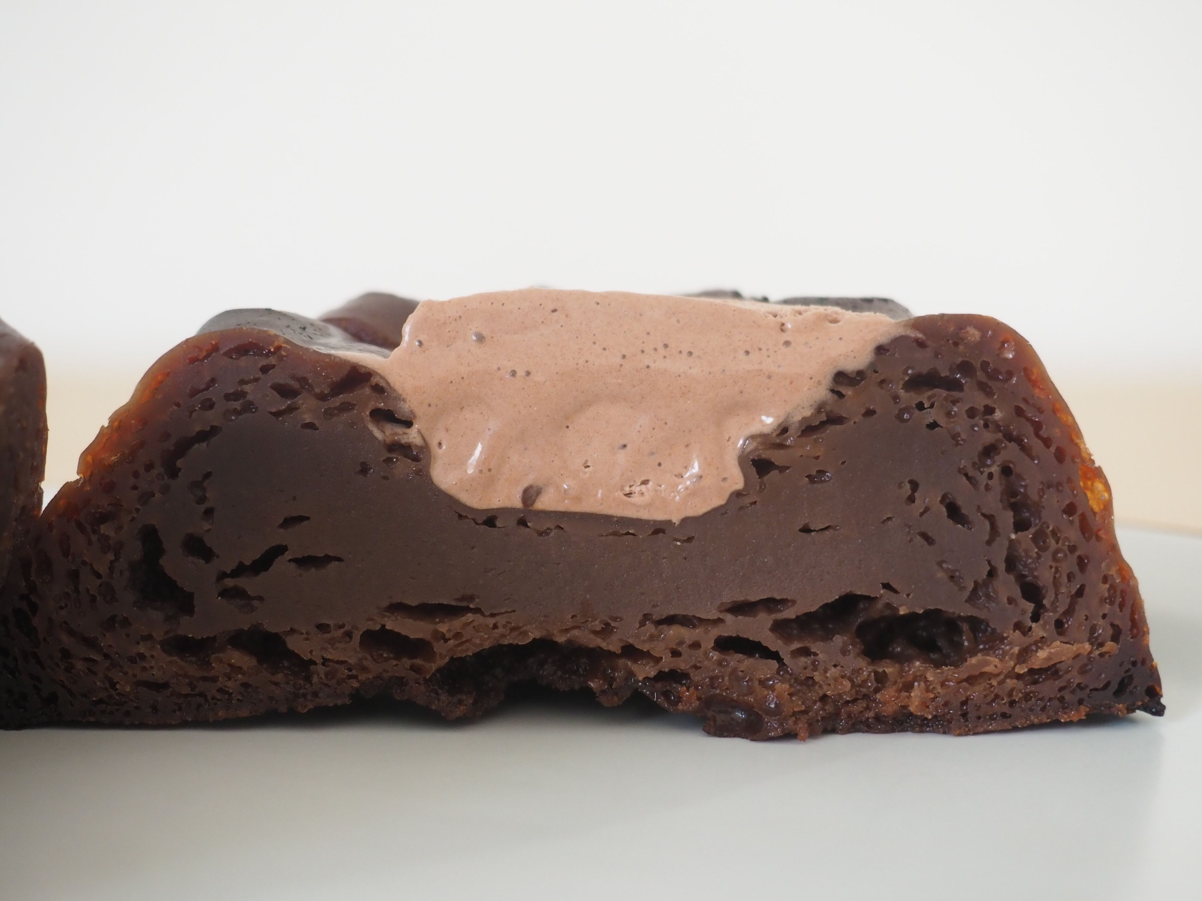 生地のチョコレートがしっかり香り、甘党好みの甘さに仕上がっています。ミルキーな味わいのチョコレートクリームは油脂感がありますが、生地との相性がいいのでむしろこれでOK!