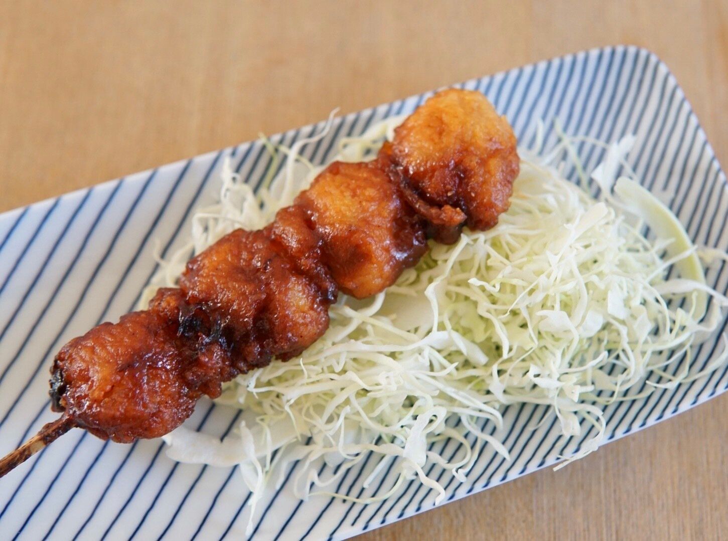 コチュジャンが香る旨辛のヤンニョムタレを絡めたチキンを串にさして食べやすく。