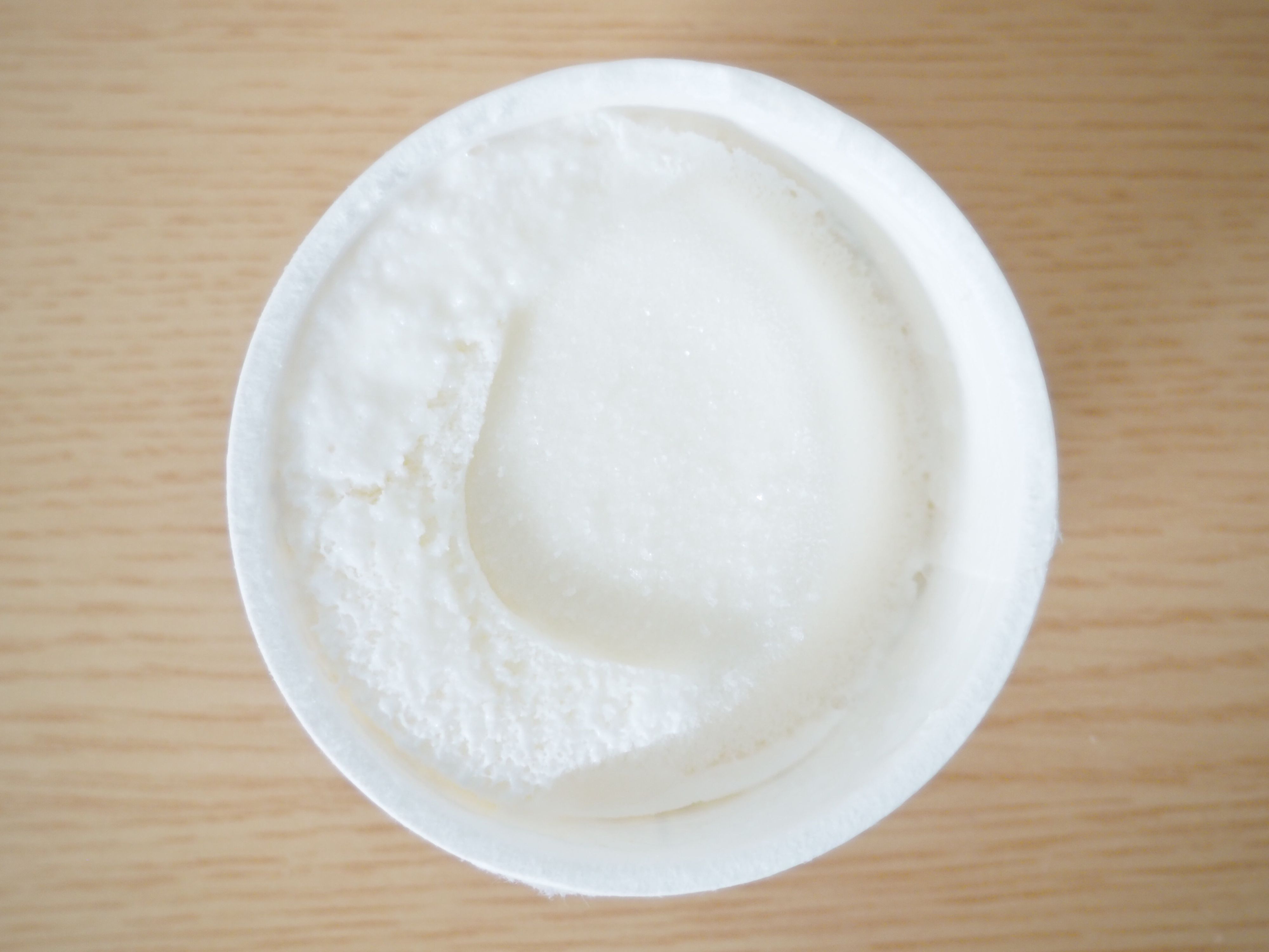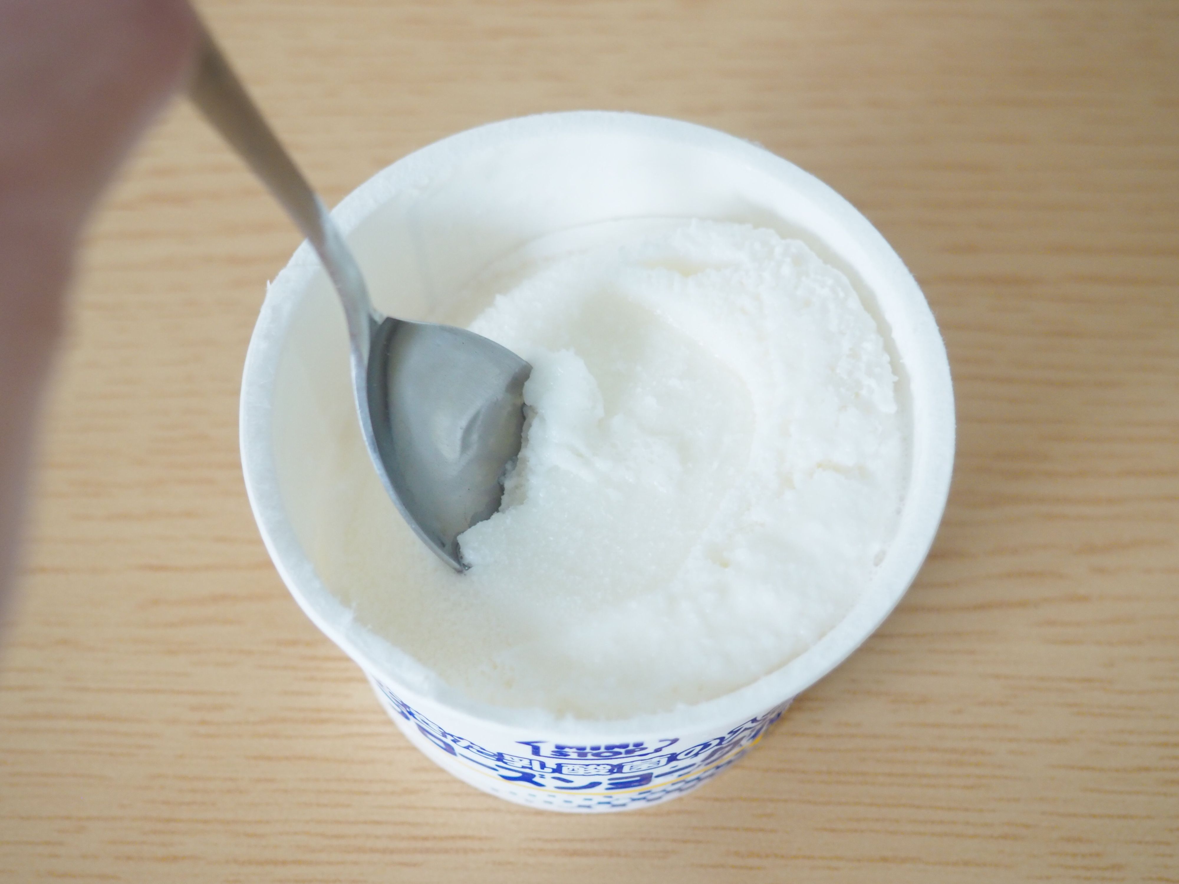 「脳天に届くほど酸っぱい!」と感じましたが、それも最初のひと口だけ。控えめな甘みと、さわやかな酸味があり、後味もすっきり。味はヨーグルトですが、シャリシャリとした舌触りはまさにアイス。ヨーグルトが苦手な人でも食べやすいかもしれませんね。