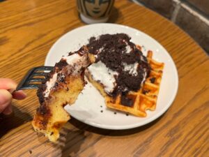 カットすると濃い緑色の抹茶餡がたっぷり!クリームもたっぷりのはずですが、端に寄っているようでカットした面にはあまりでてきませんでした。生地はもっちりやわらかく、抹茶餡は甘すぎずしっかりとした苦みがあります。クリームはふんわりとして、抹茶餡との組み合わせバッチリ。ペロッと食べられてほっぺたが落ちるおいしさです。一度に何個も食べられそうなもっちり食感はうま~!リピ決定のスイーツなのでぜひお試しください。