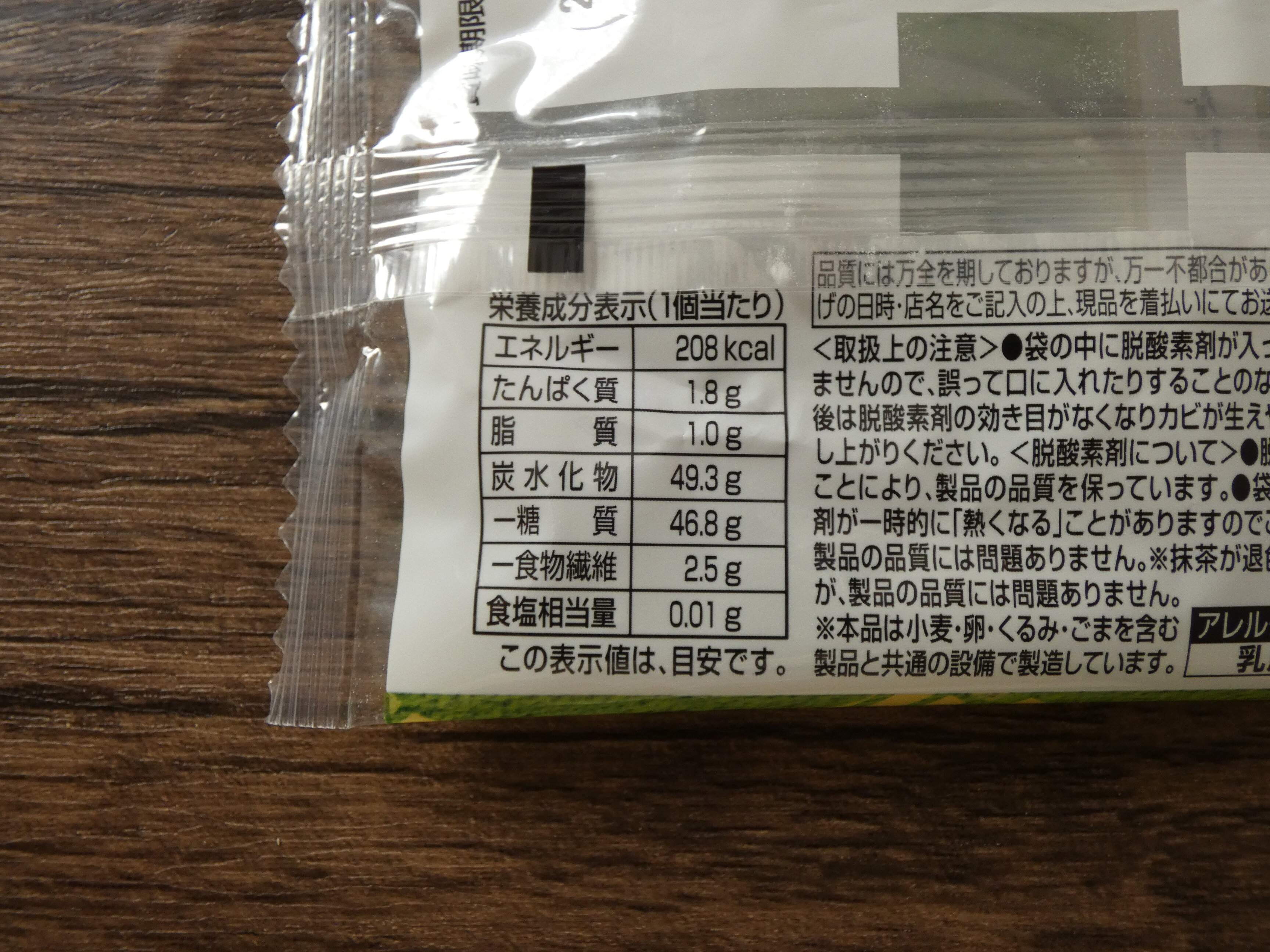 栄養成分表示を見ると1個のエネルギーは208kcal。