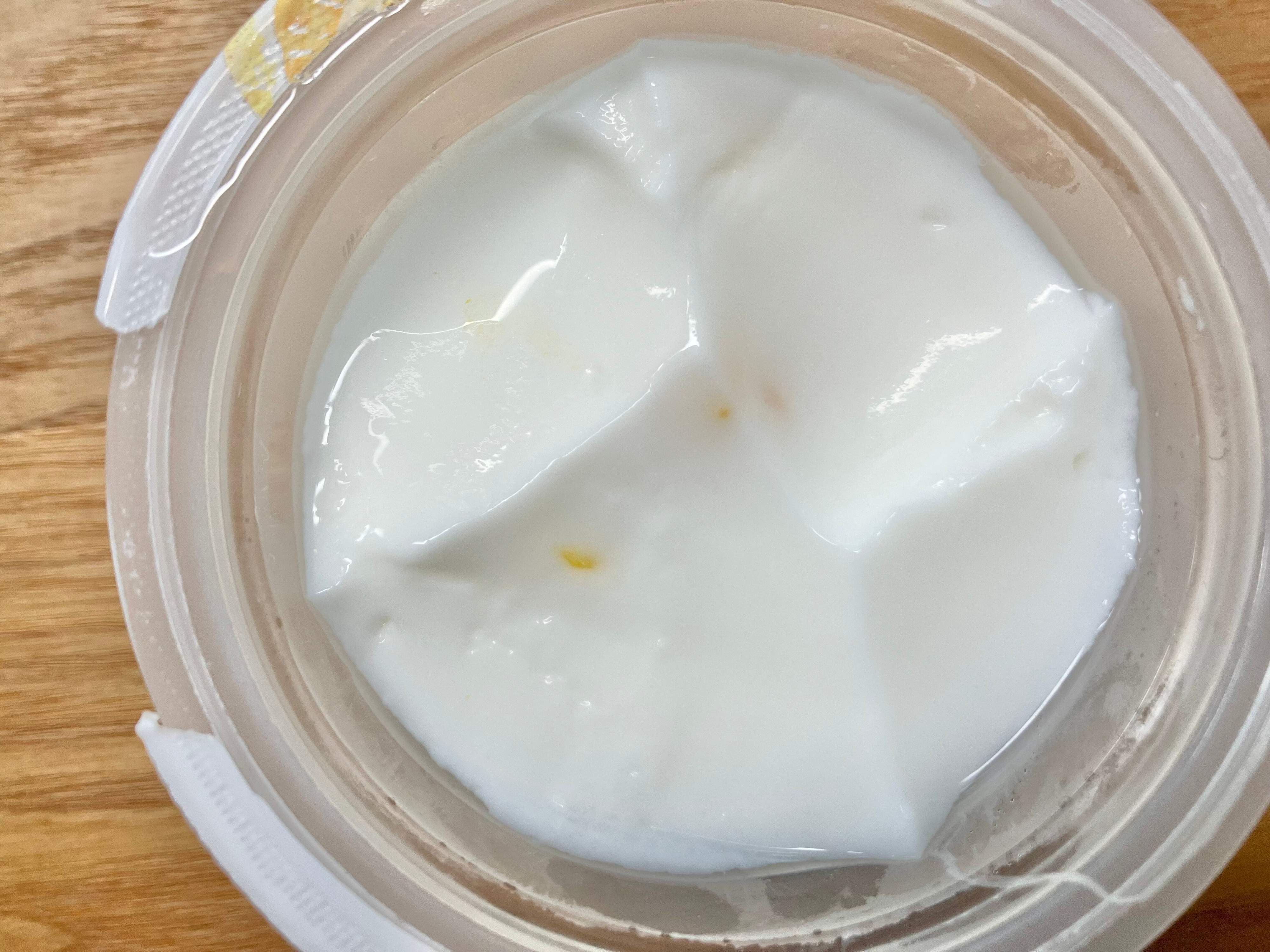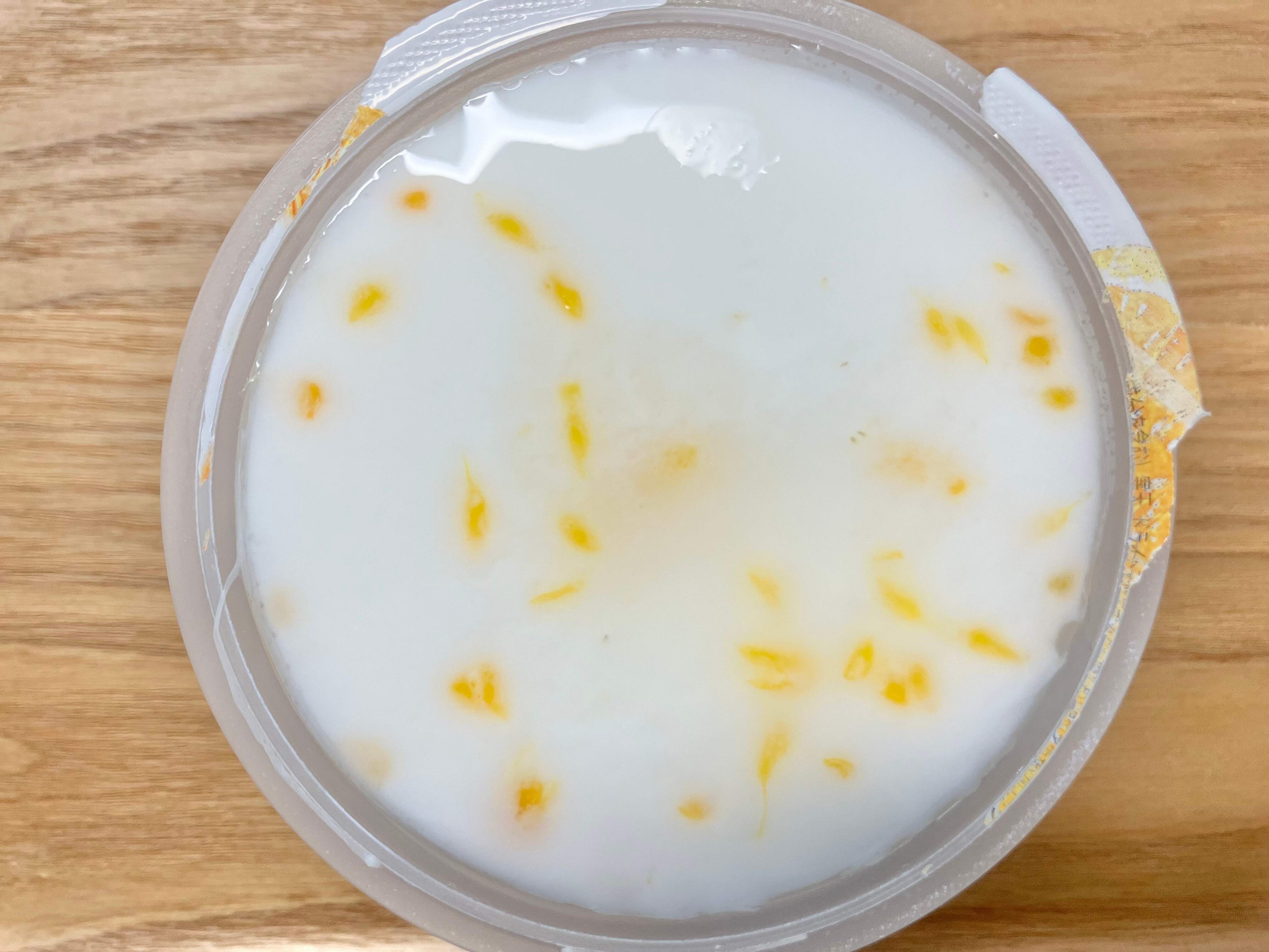 蓋を剥がしてみると容器のギリギリまでミルク寒天が詰まっていました!