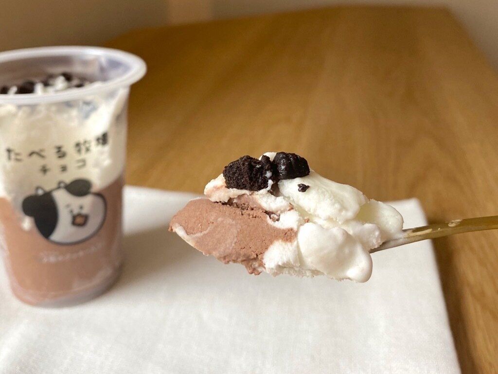 リニューアルされた「たべる牧場チョコ」は、2種のクッキーの食感と本格的な味わいを楽しめる贅沢アイスでした。「たべ牧」シリーズは毎回はずれなくおいしいですが今回も買って大正解。