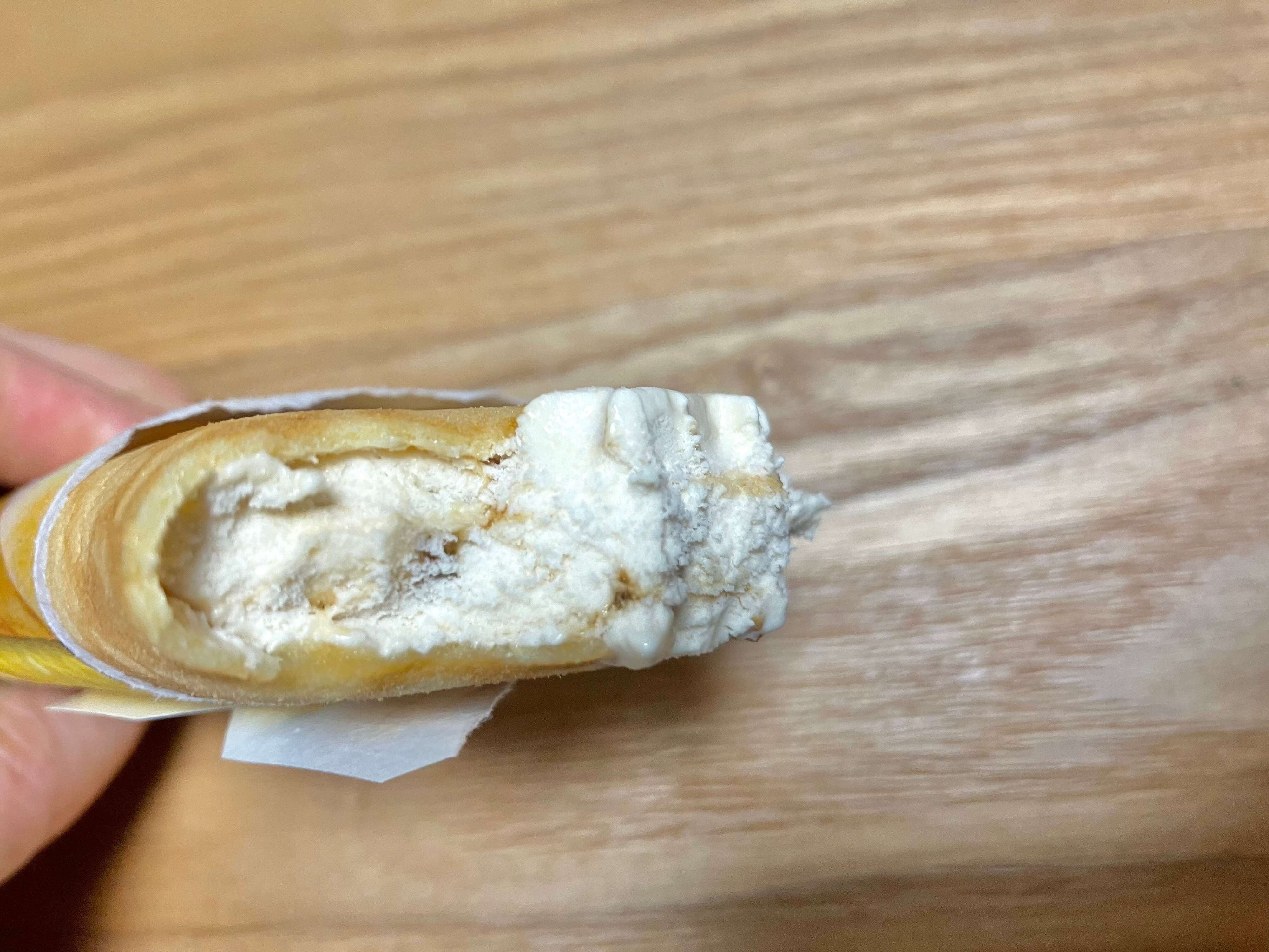 この生地と一緒にアイスを食べるとよりおいしさが増しました。