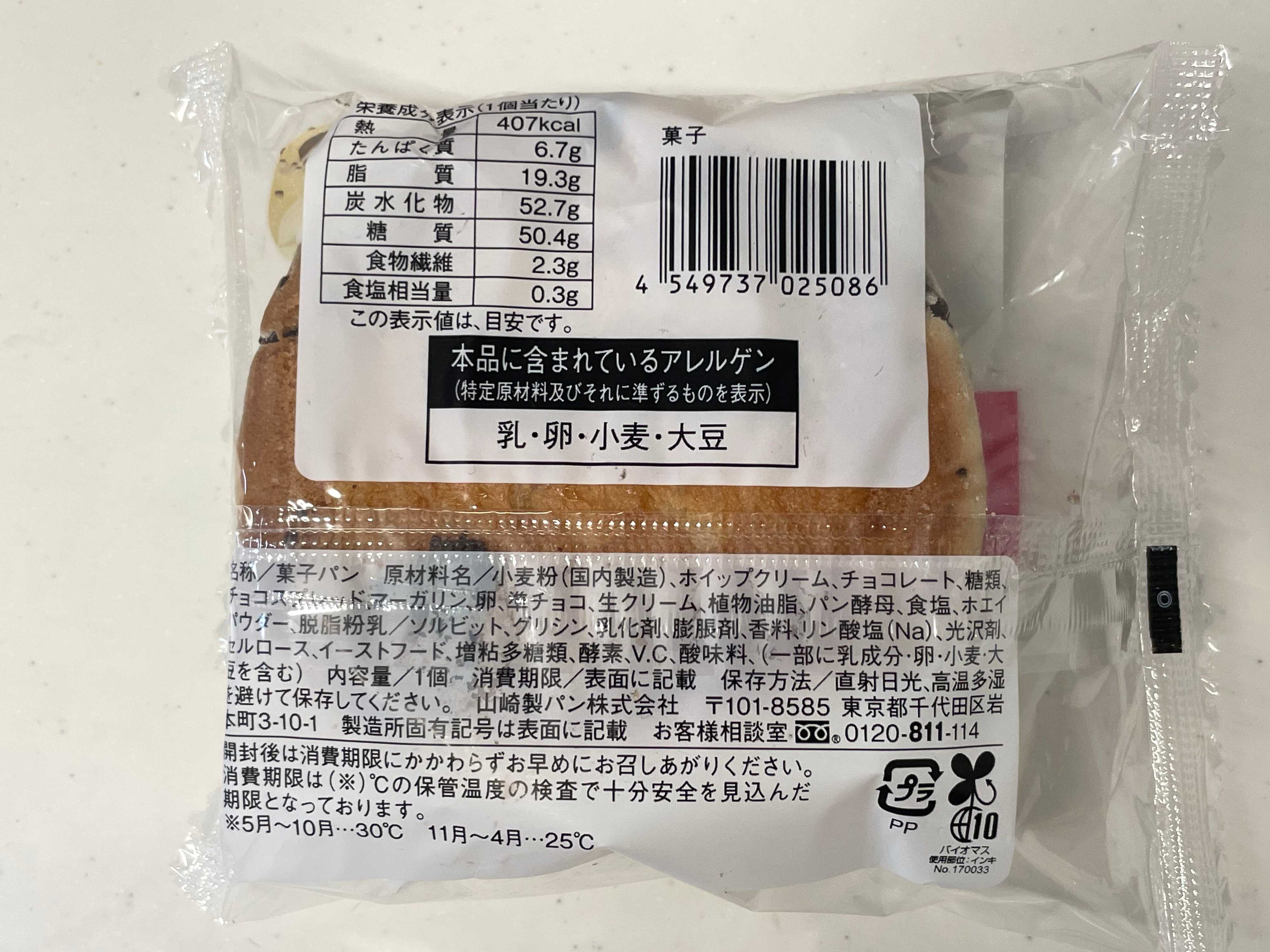 クッキー生地はさっくり、中はふんわりややパサつき感が否めないものの、中のチョコクリームとホイップクリームがカバーしていました。