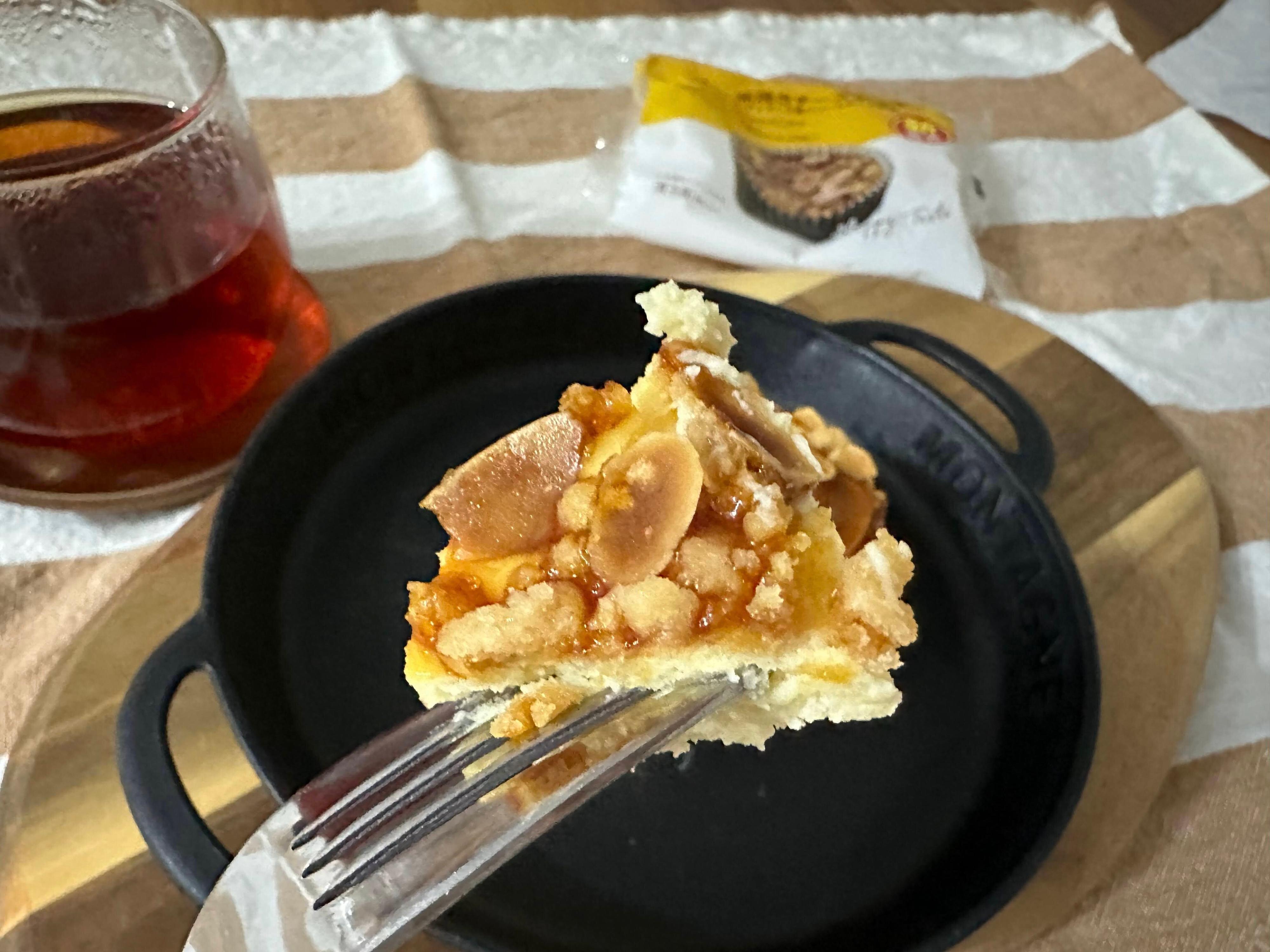 カラメルの甘味も、クランブルのザクザクの歯応えも、ナッツのわずかな塩味も全てが絶妙で最高においしいスイーツだと感じましたよ。