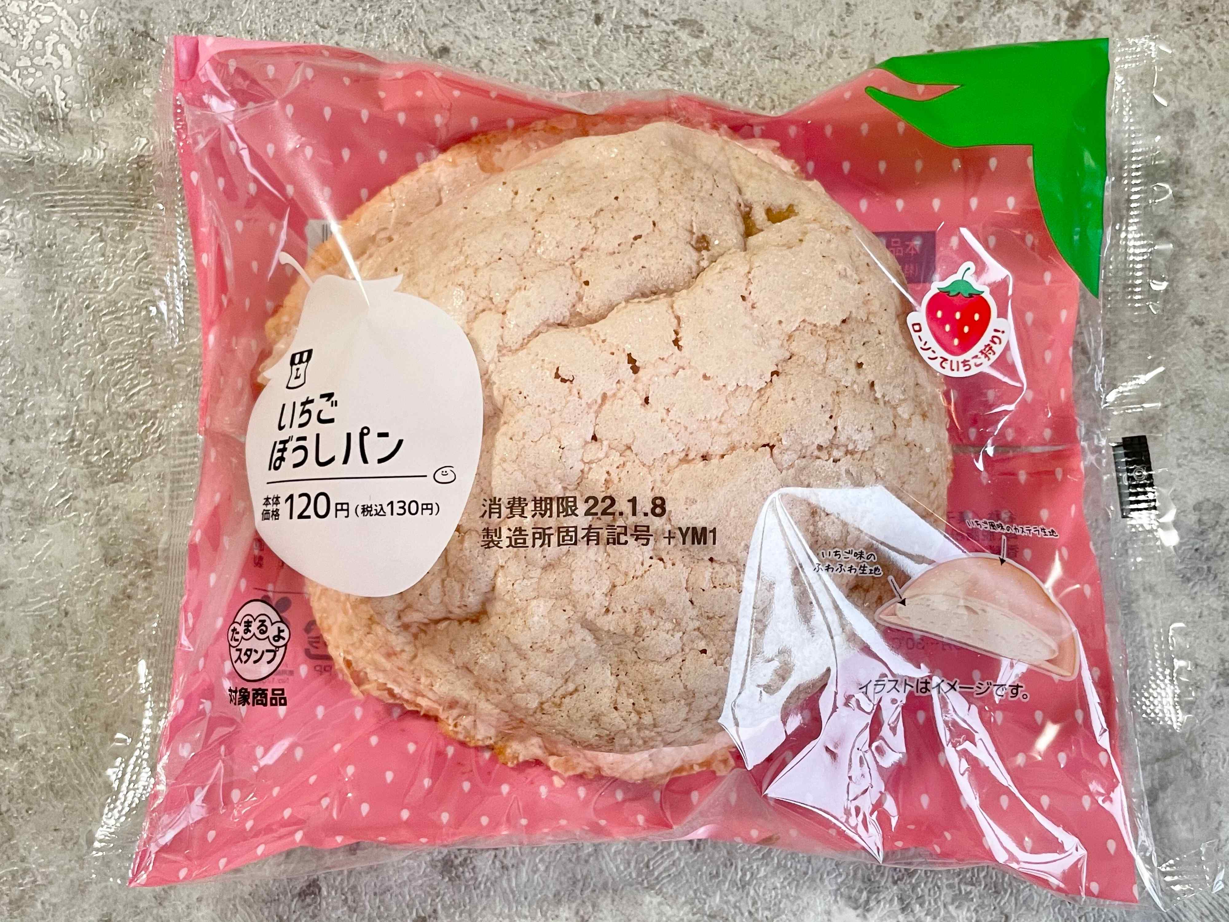 どこのお店もいちごを使ったパンやスイーツが増えて、いちご好きにはたまらない季節になりましたね。ローソンへ行くと、ベーカリーコーナーの一番上にあったのは「いちごぼうしパン」。イチオシのようで、ポップが貼られていました。何よりかなり大きくて食べ応えがありそう。ちょうど小腹が減っていたので、購入しました。