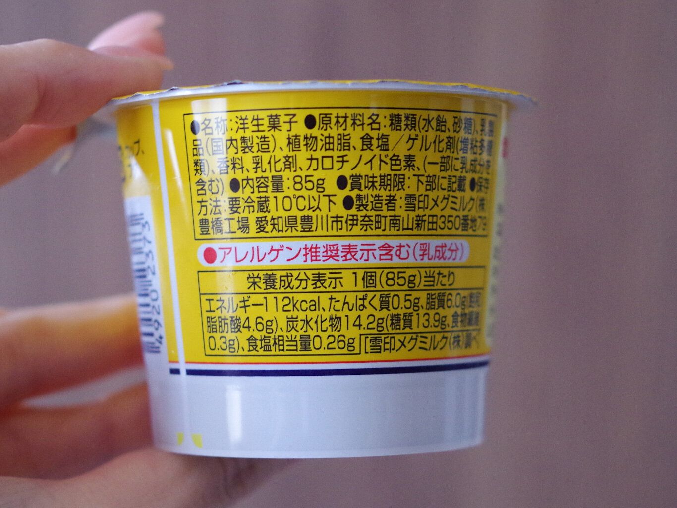 カロリーは1個当たり112kcalです。なお、大きさは一般的な3連パックのプリンとほぼ同じサイズです。
