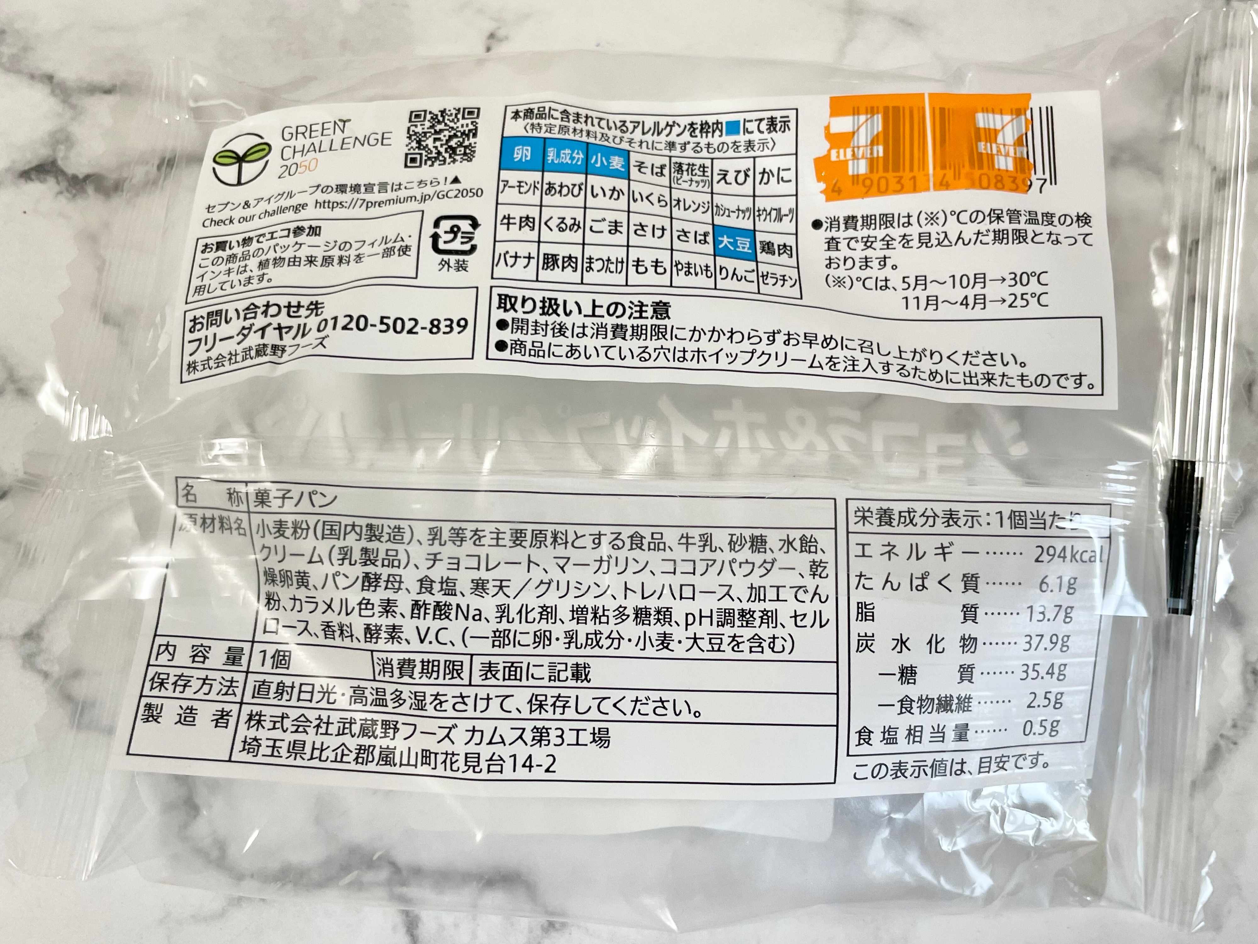 チョコクリームとホイップクリームのWパンチなので400kcalくらいありそう…と予想していましたが、1個あたり294kcalと予想より下回っていたので、ちょっと嬉しかったです。