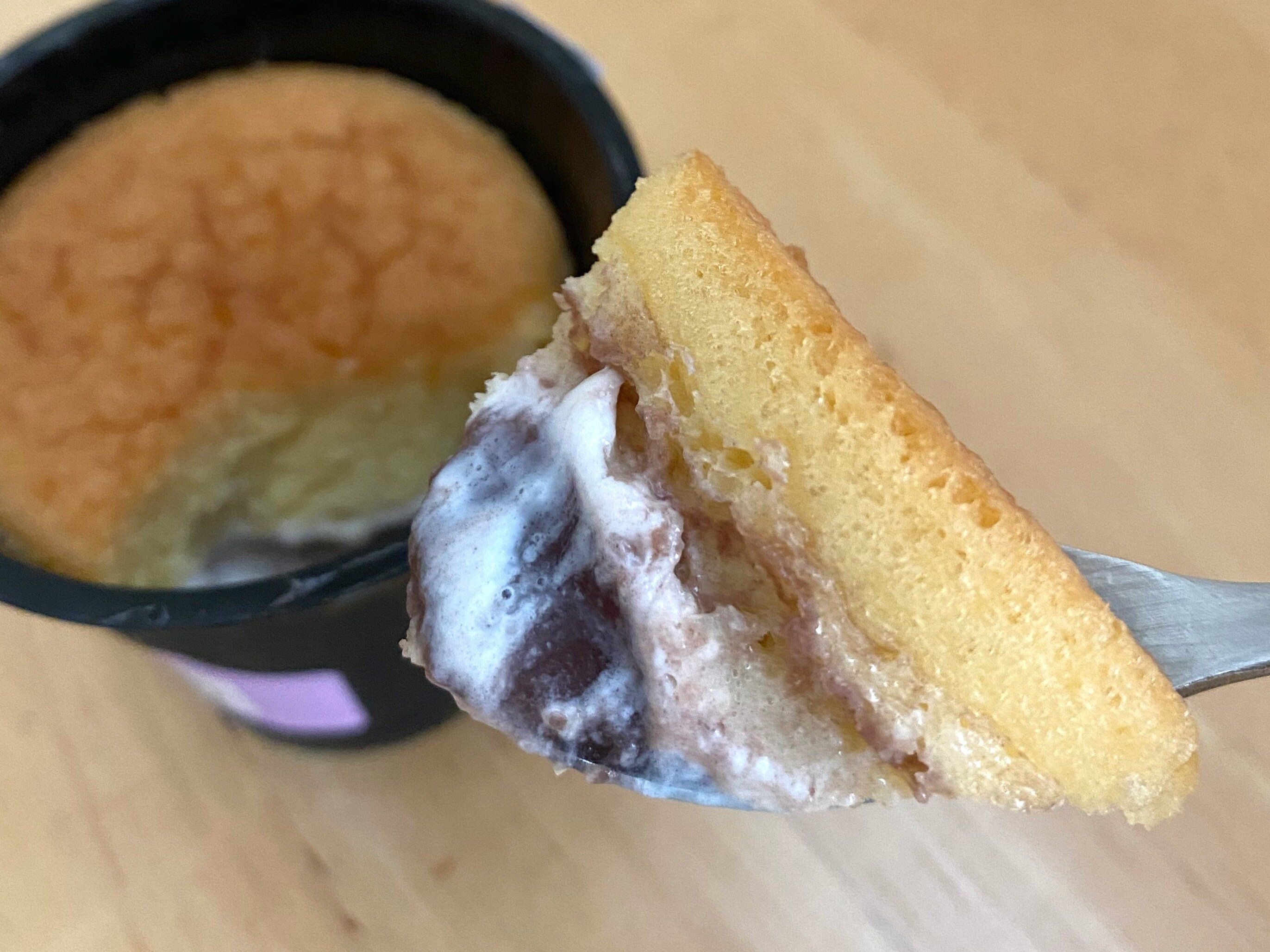 バター入りスフレ、ホイップクリーム、あんペーストが3層になった、和洋どちらのテイストも楽しめるスイーツです。