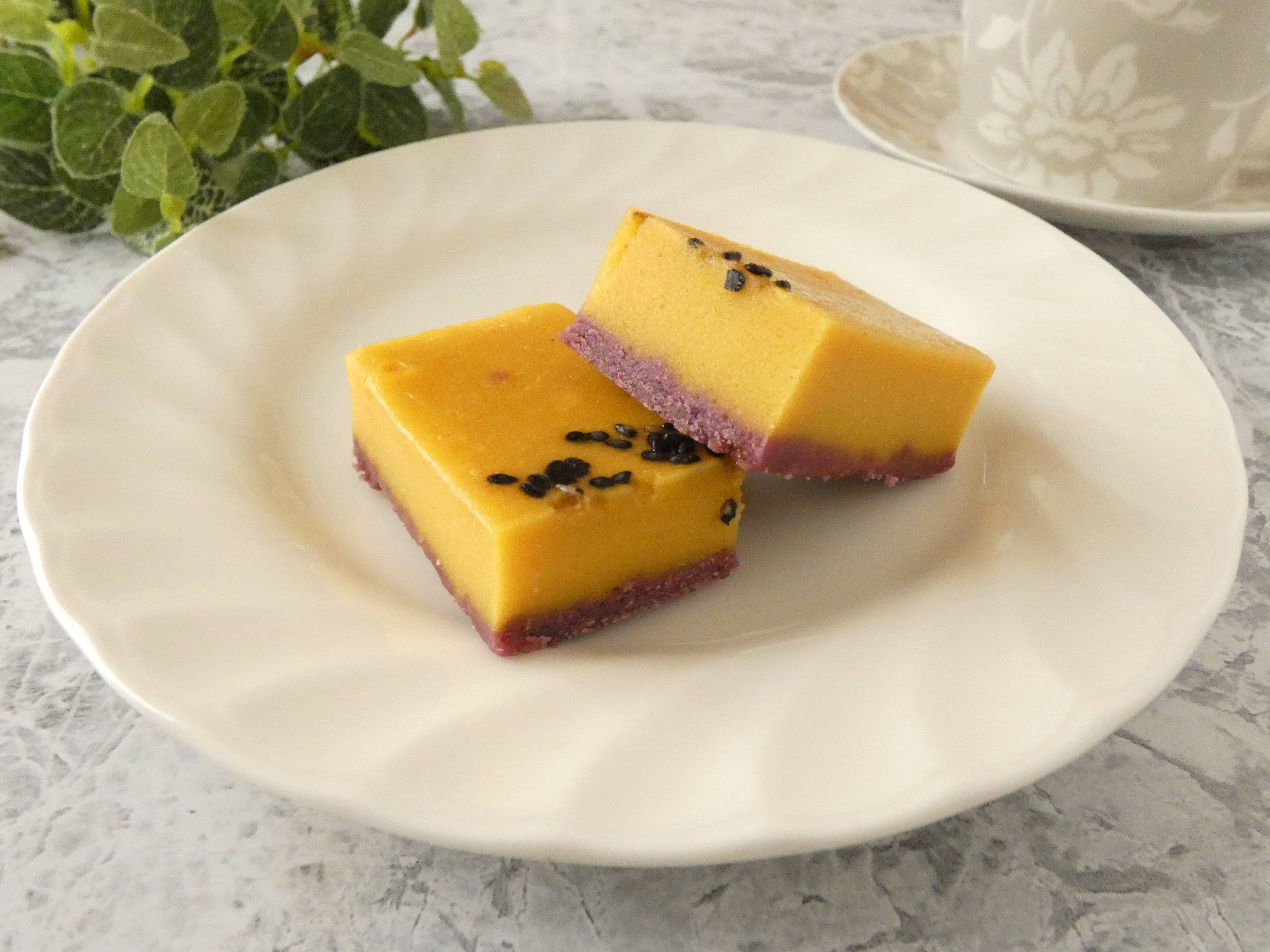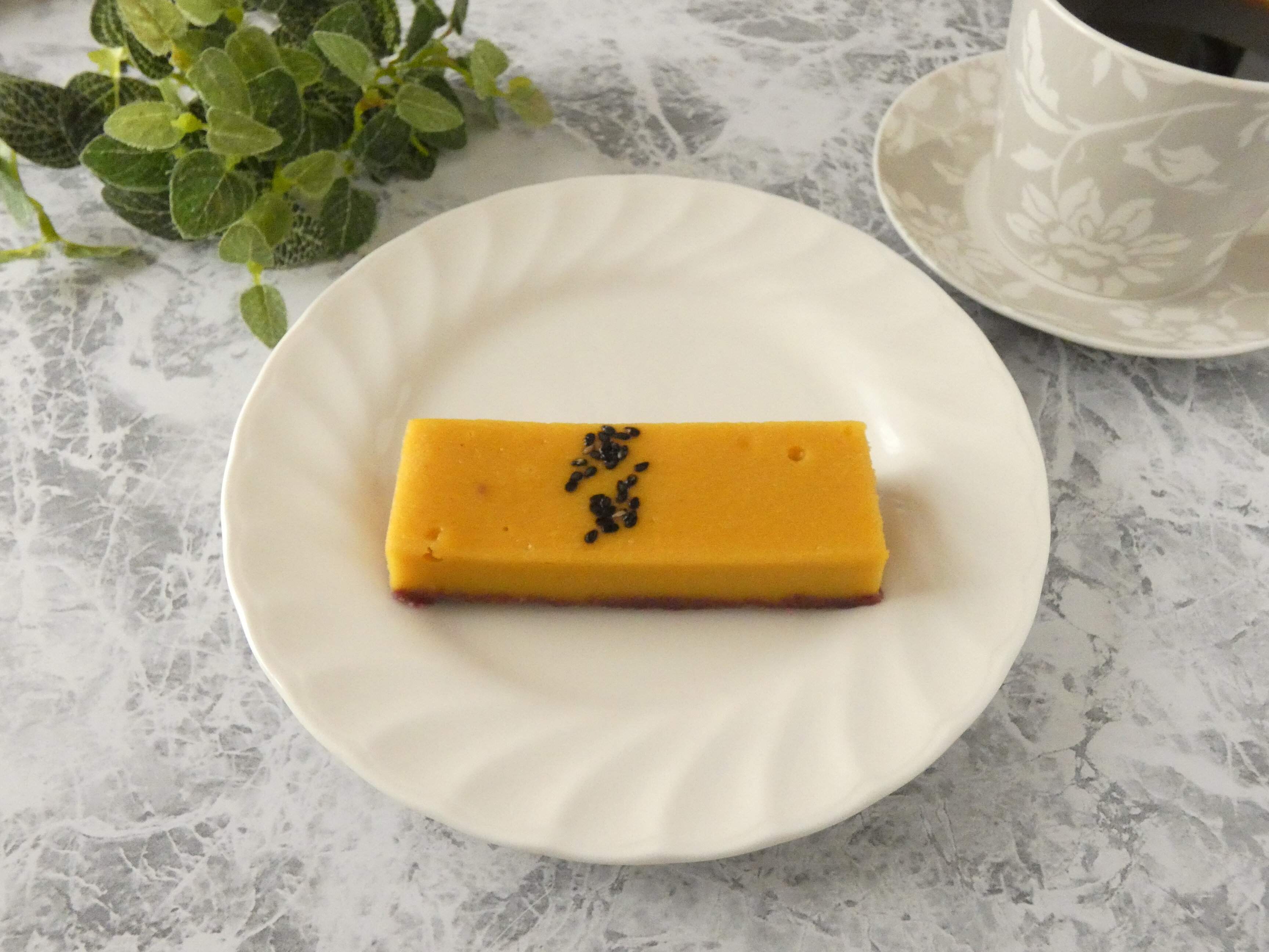 さつまいもの皮をイメージした紫色のタルト生地に、さつまいもペーストを配合したケーキで上にはゴマがトッピングしてあります。