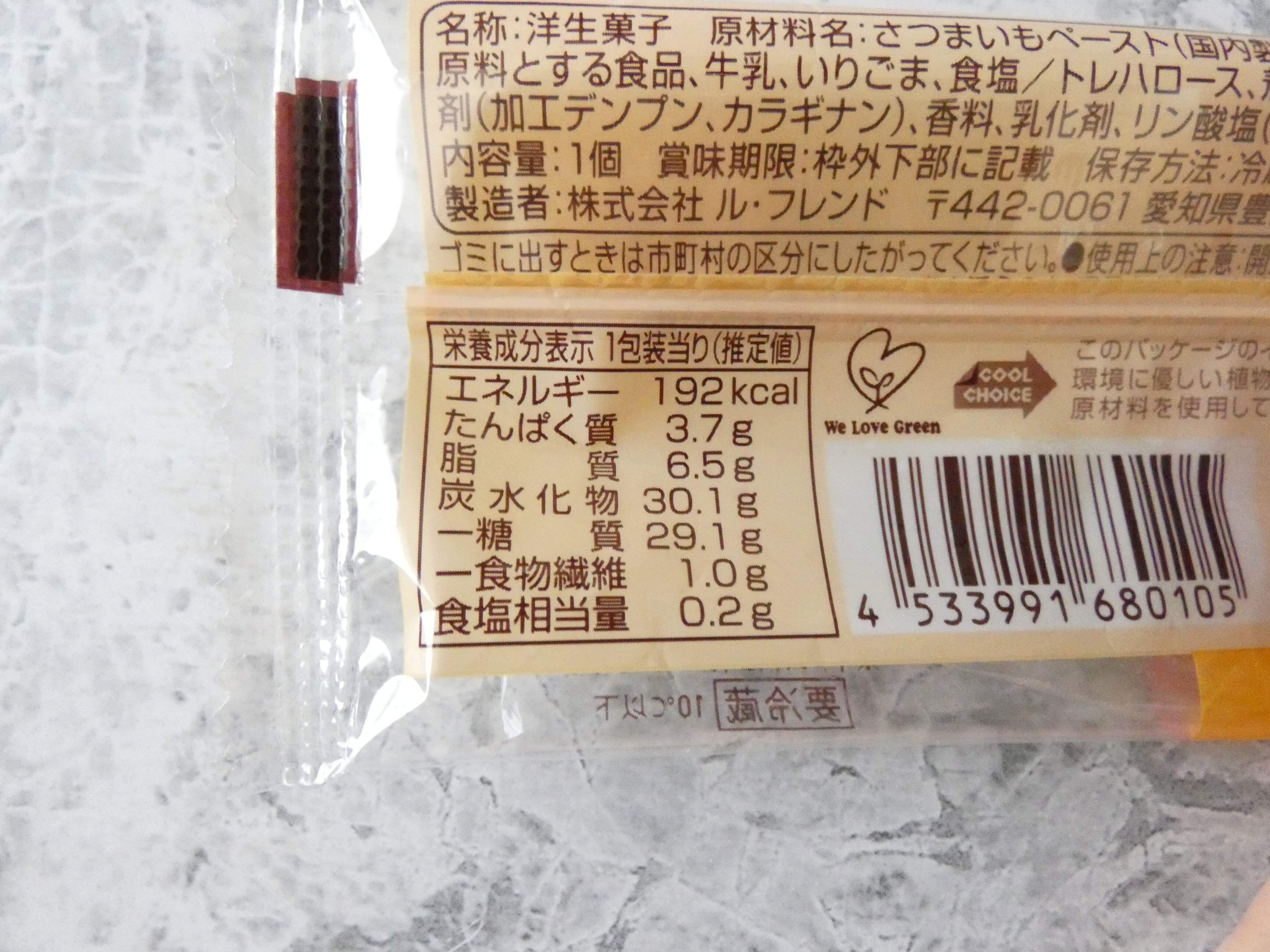 栄養成分表示を見ると1個のエネルギーは192kcal。