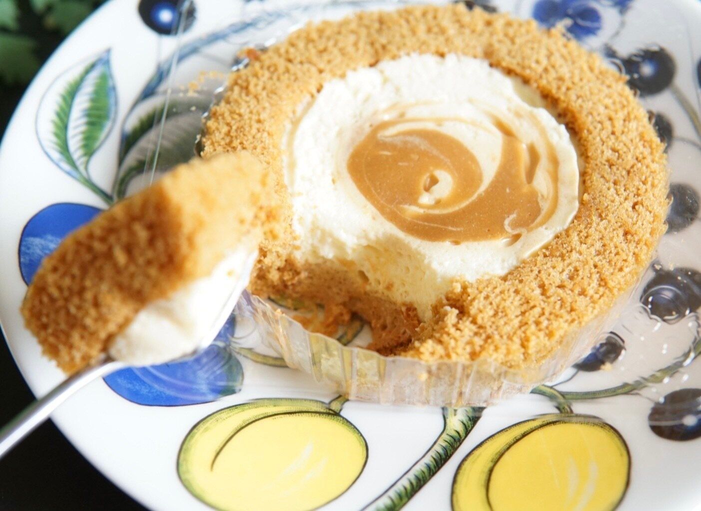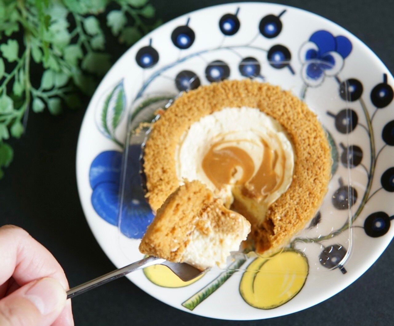 ほろ苦キャラメルクリームとカスタードクリームのバランスを何度も試作されて作られたとのことで、どちらのよさも消すことなく絶妙な甘さとほろ苦さとほのかな塩気のバランスでまとめられているという感じがしました。今まで、数多くのプレミアムロールケーキをいただいてきましたが、その中でもベスト3に入るかもというくらい個人的にはお気に入りです。