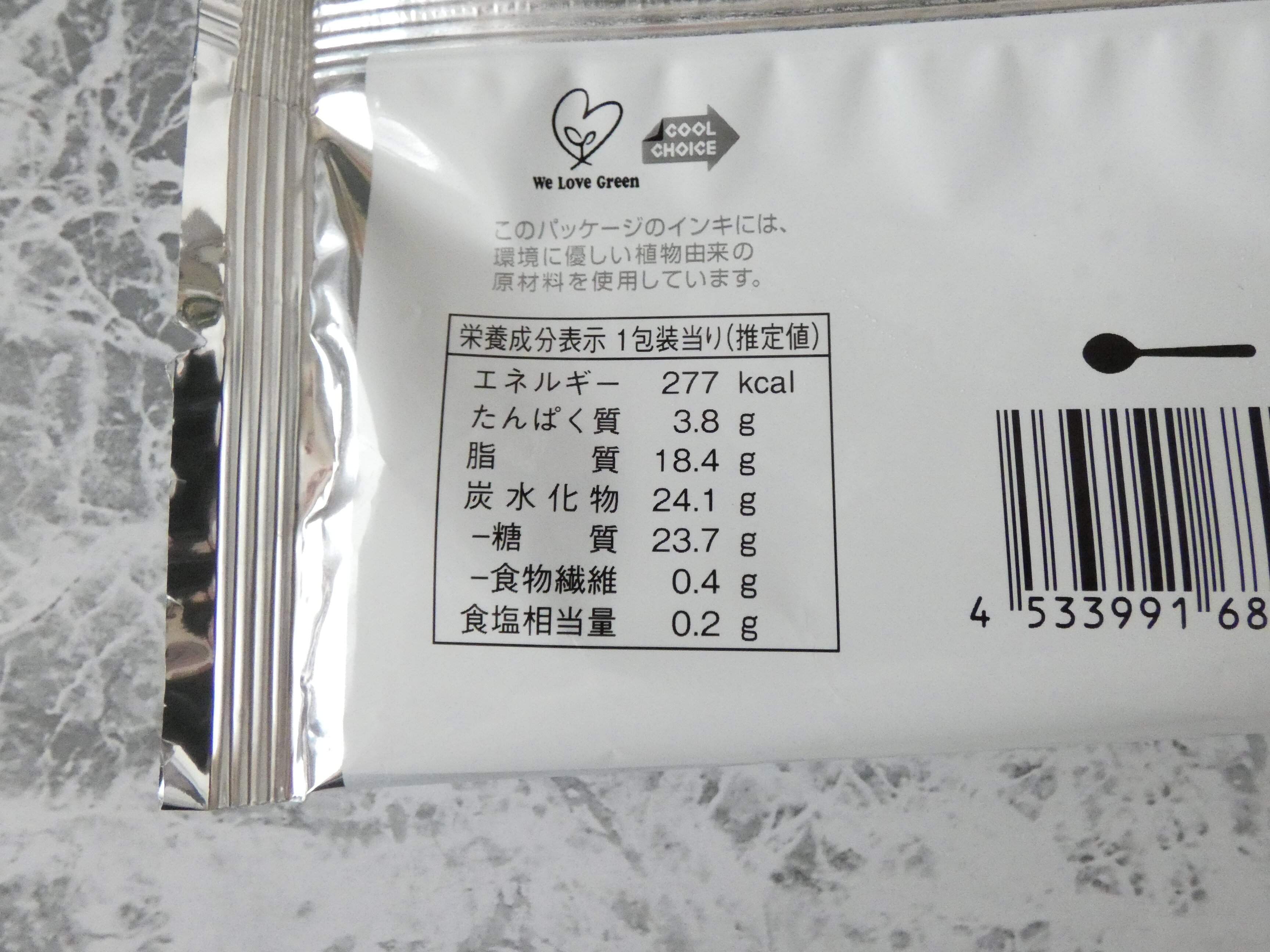 栄養成分表示を見ると1個のエネルギーは277kcal。