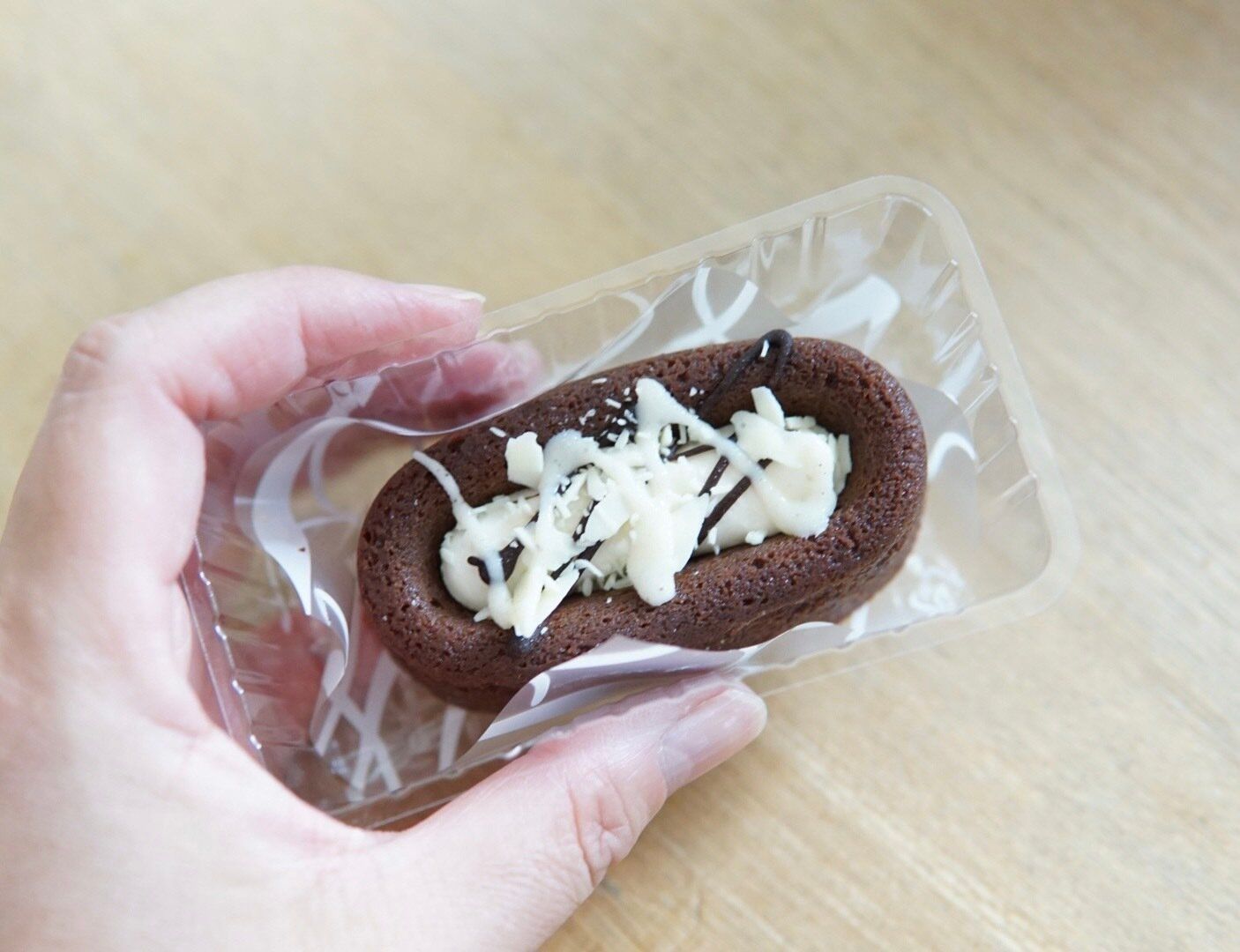 また、生ガトーショコラシリーズの嬉しいポイントは、プラスチックトレーにフィルムが重ねられていて、手に取ってワンハンドで食べやすい点。濃厚なチョコスイーツを、手をベタベタさせずに外出先でも気軽に食べたい方におススメです。
