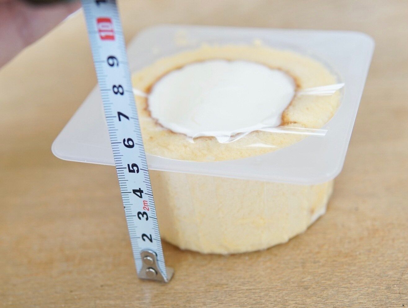 高さを計ってみたら、約5cmありました。カロリーを計算してみると、いつものプレミアムロールケーキが219kcalに対し、「×2」は434kcal。ほぼ2倍なので横幅も同じだと思われます。単純に高さが2倍になっただけ、と言ってしまえばそうかもしれませんが、いただいてみてクリームをすくうときのたっぷり感覚が全然違うなと感じました。