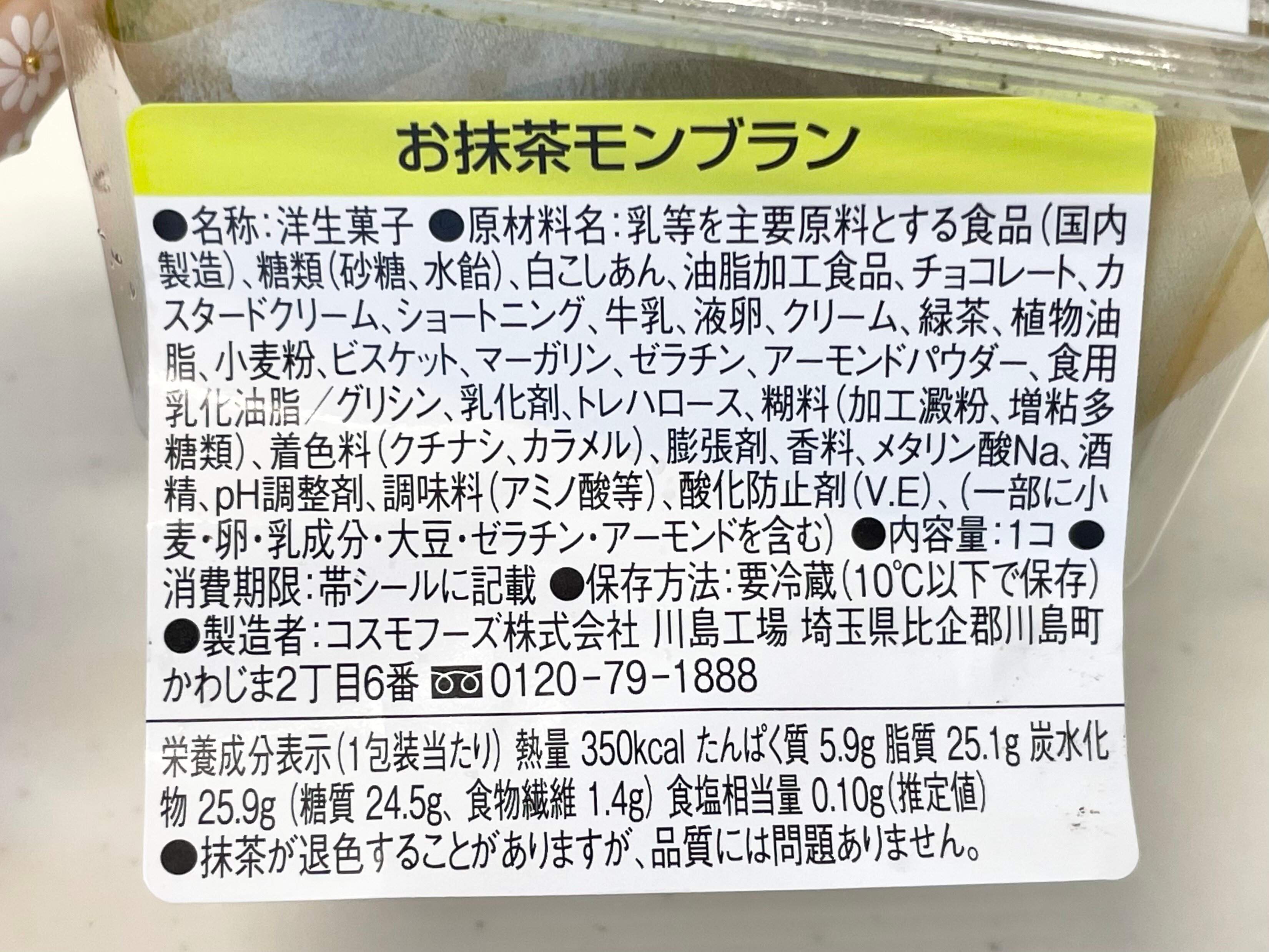 原材料を見てみるとモンブランの中身は白こしあんでした。