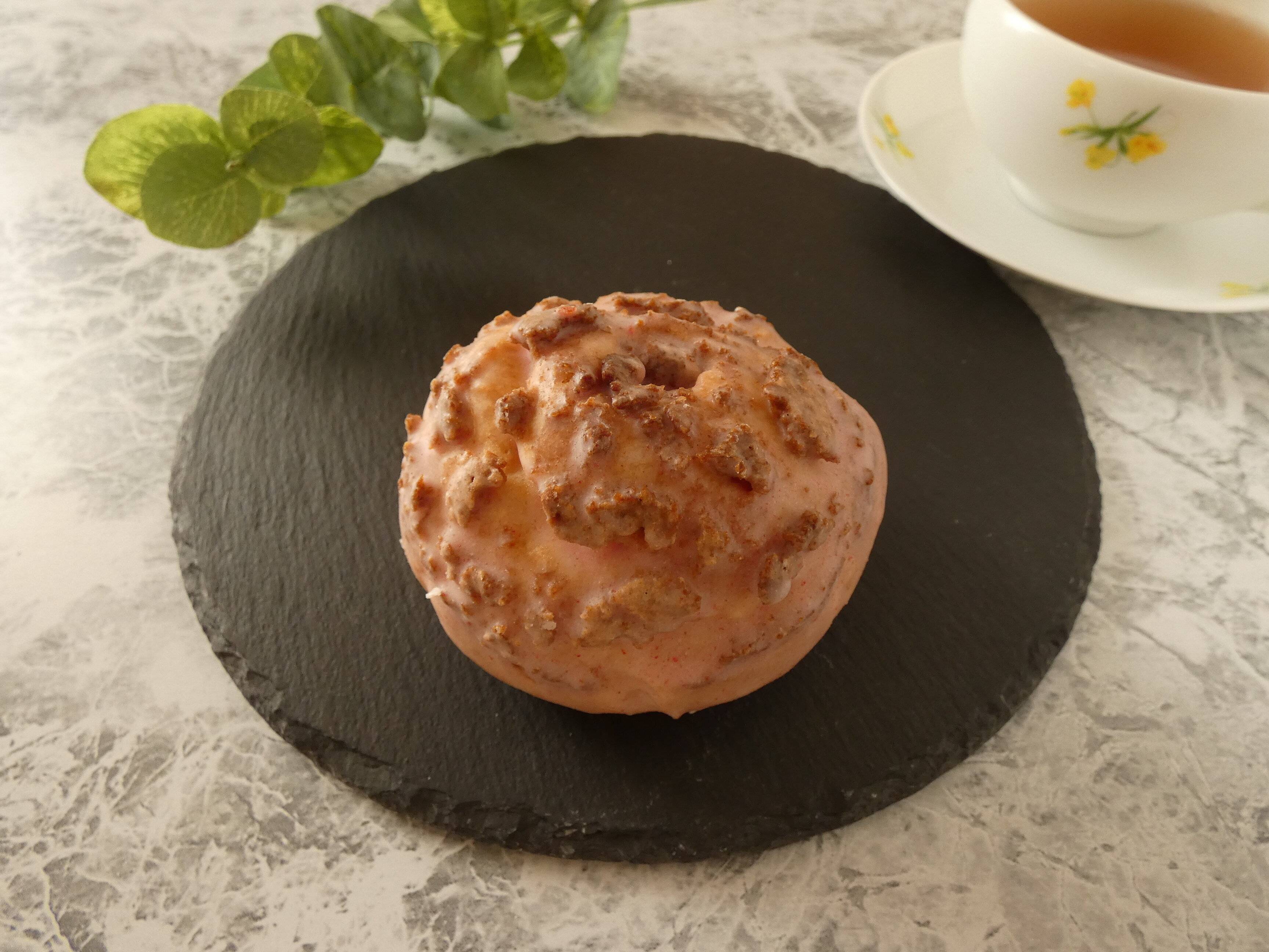 開けると苺の香りがふわっと広がります。カットするとピンク色のクリームがぎっしり。果肉が入っているので、甘酸っぱくてフレッシュ感たっぷりです。表面のストロベリーチョコレートの甘さはちょうどよくて、小ぶりのシュークリームですがクッキー生地のザクザク食感で満足感があります。