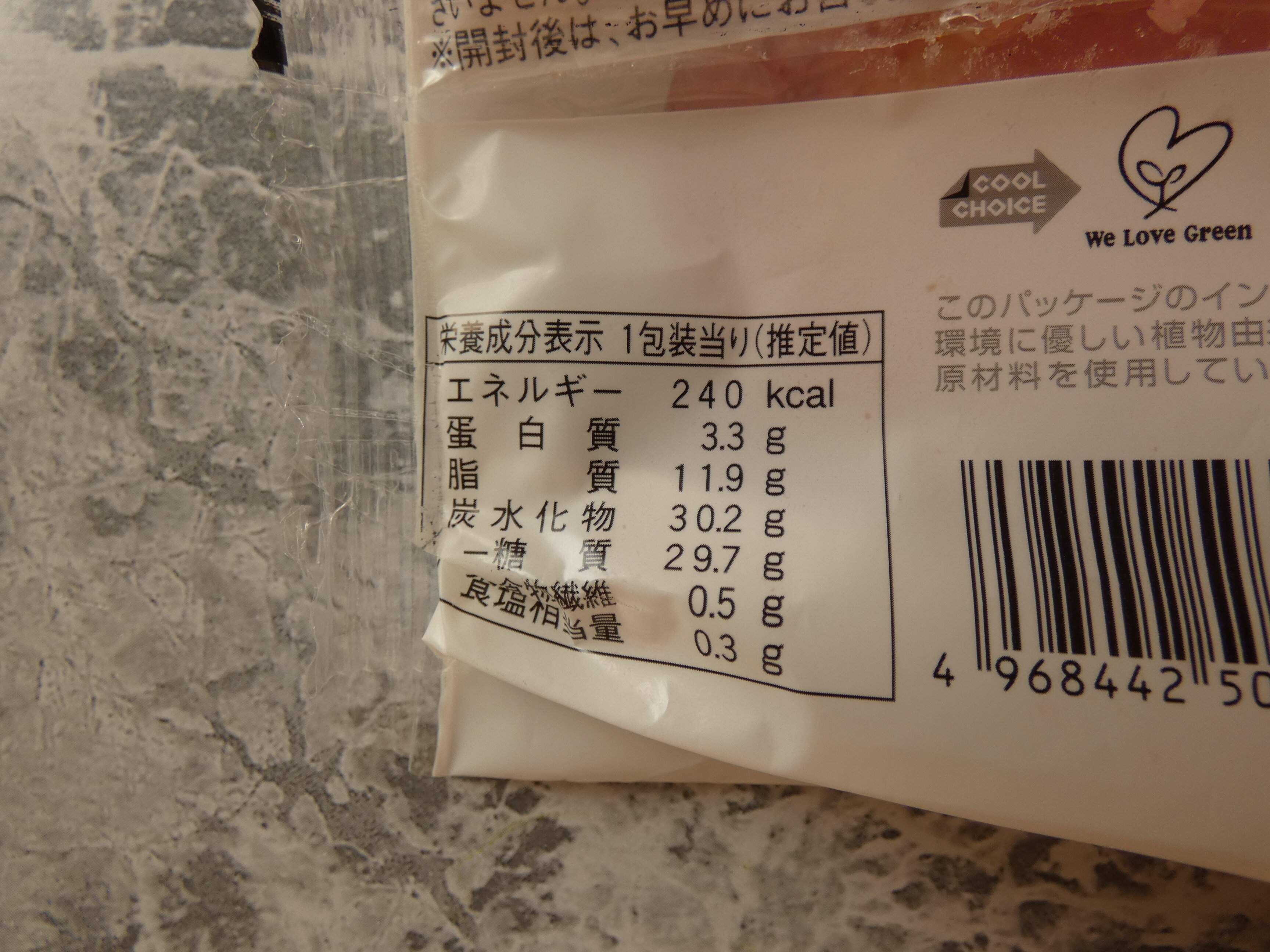 栄養成分表示を見ると1個のエネルギーは240kcal。
