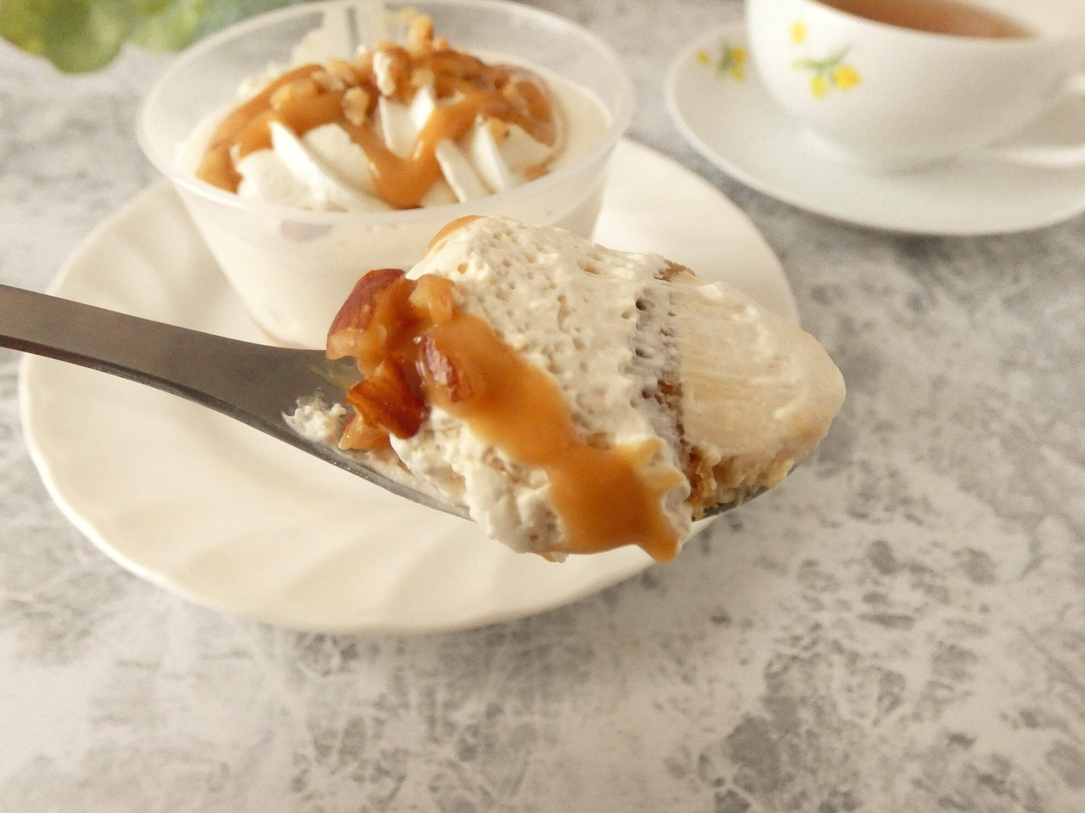 カラメルスポンジの間にはキャラメルムースが入っていて、その上にはキャラメルクリームがたっぷり。