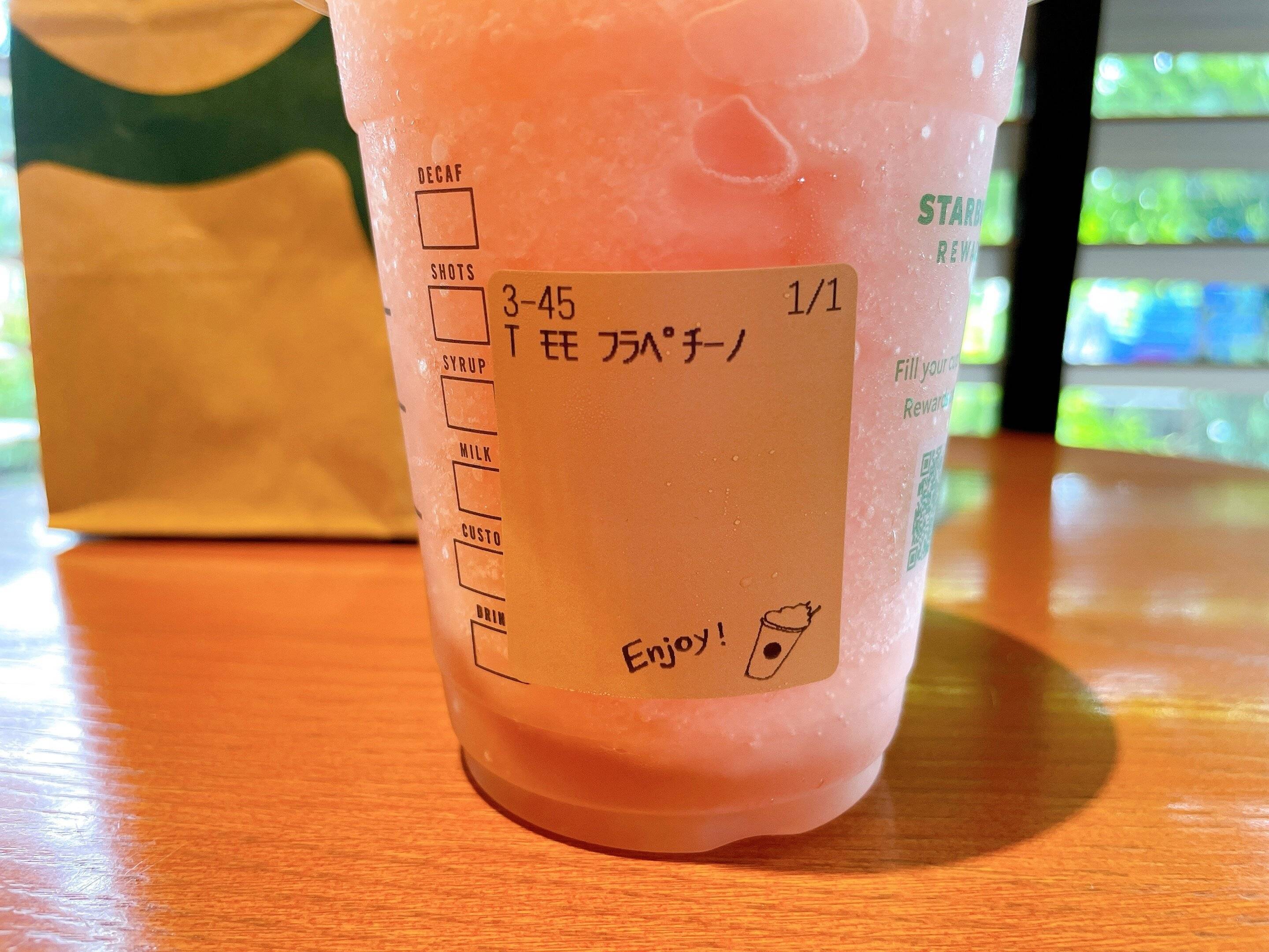 ピーチベースのフラペチーノなので、ミルクは入っていません。