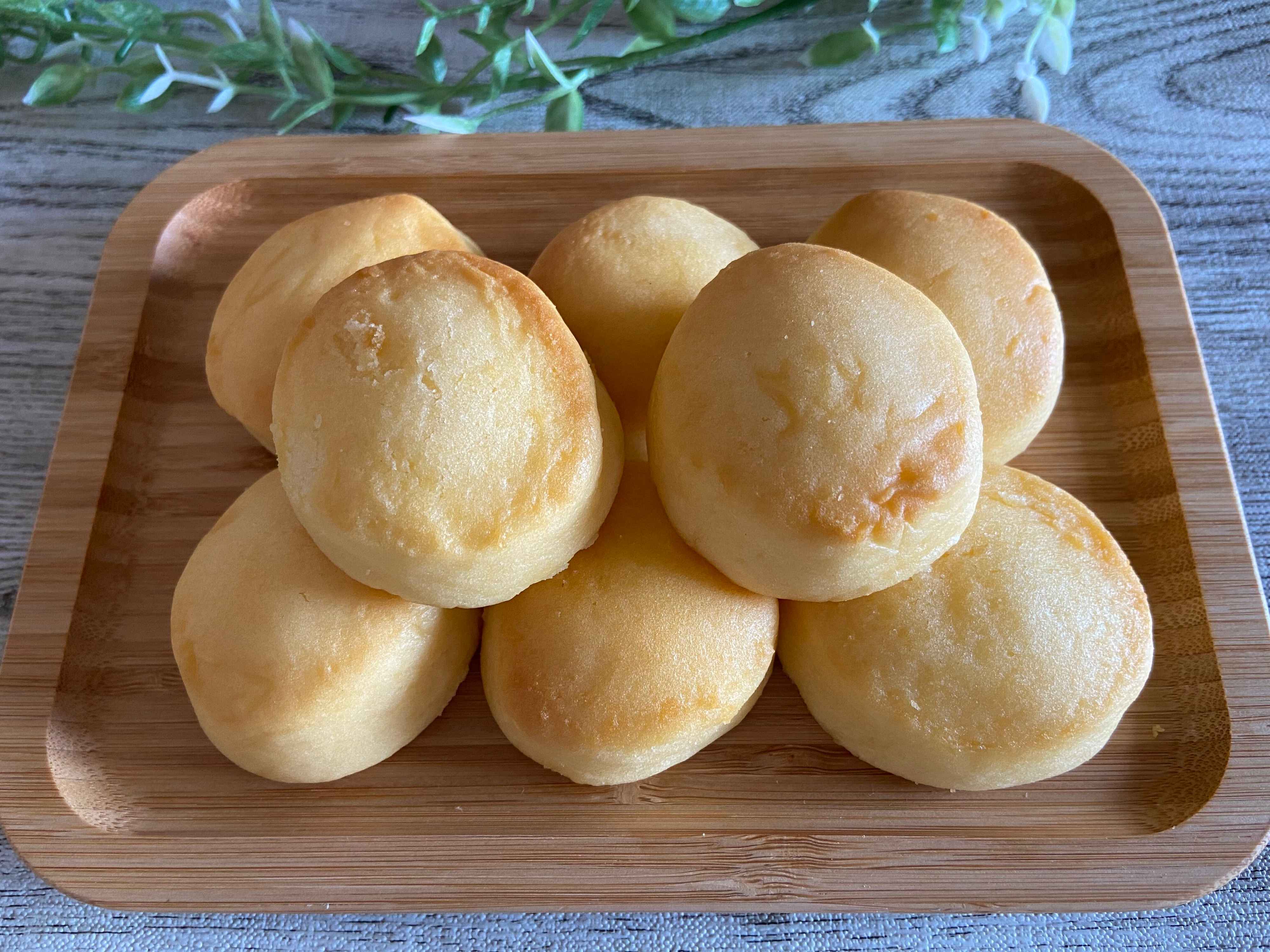 1個当たり約54円、小さくてまぁるいたまご色のかわいいパンが8個入りです。