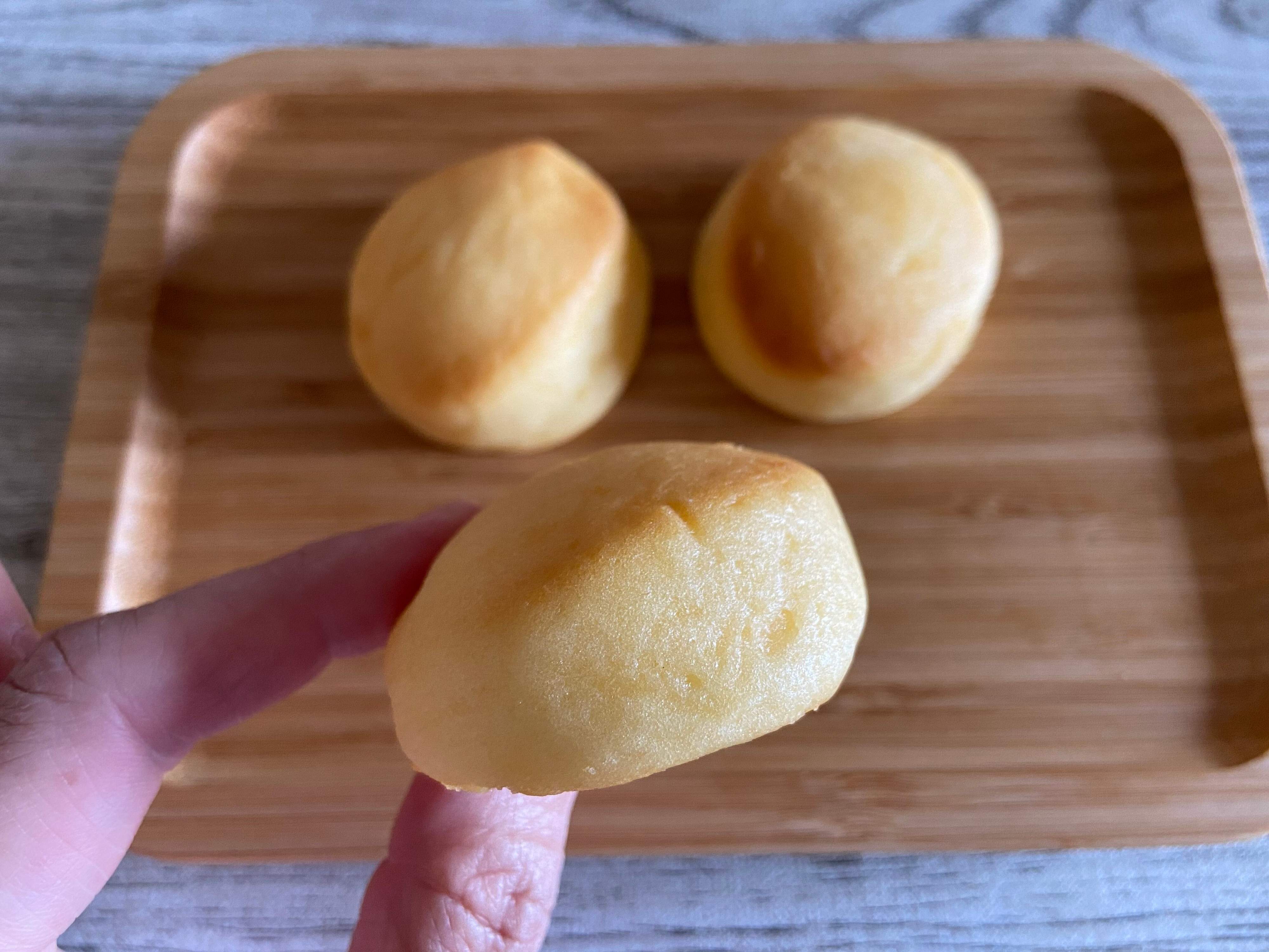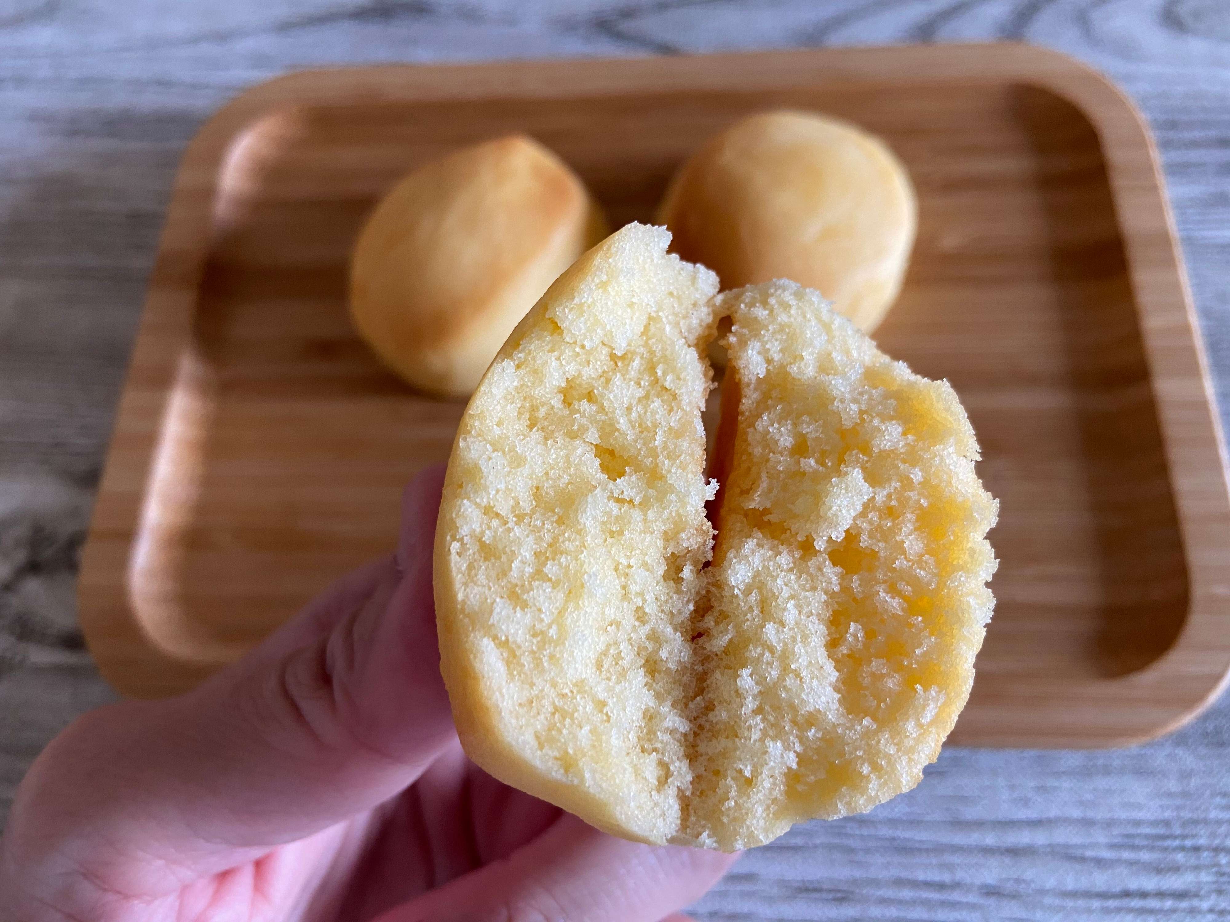 小ぶりで小さいお子さんのおやつにも食べやすいサイズ感!手で持つとしっとりしています。