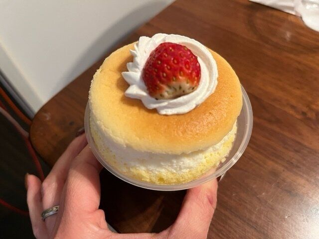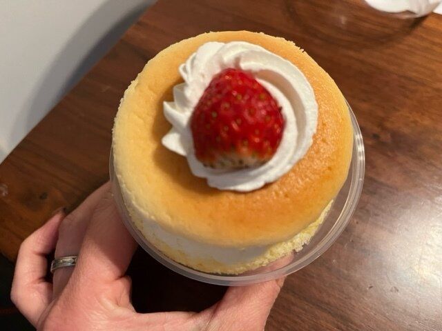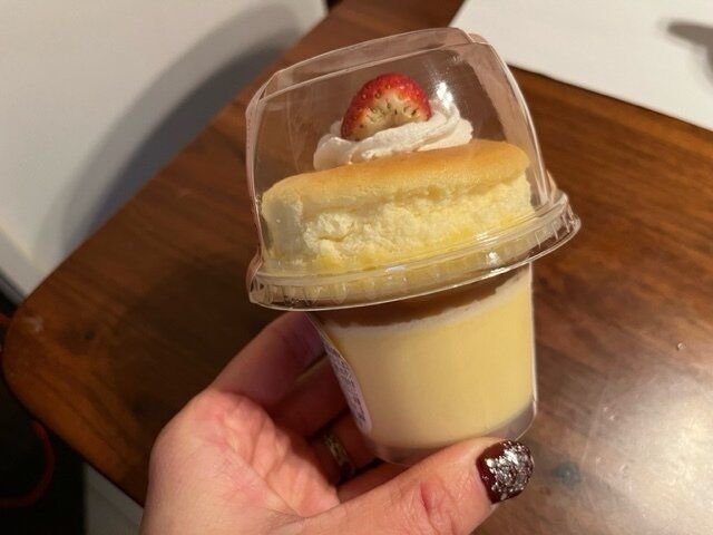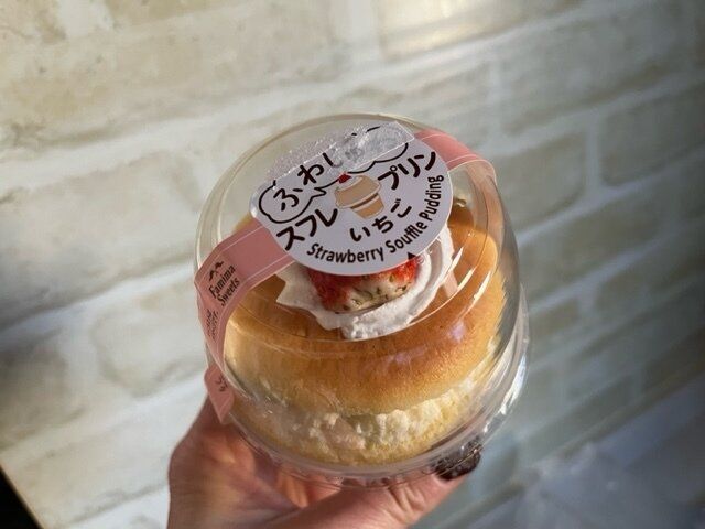 【ファミマスイーツ】ふわしゅわスフレプリンいちご。スフレチーズケーキとプリンにいちごがのっかった!