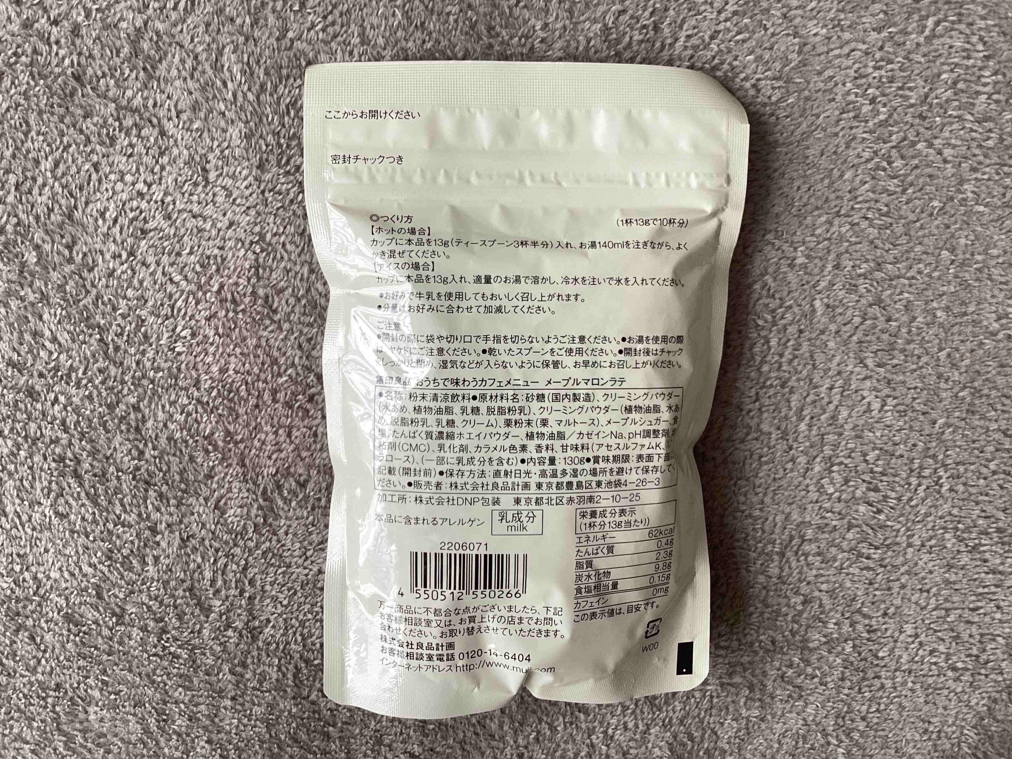 商品名 無印良品 おうちで味わうカフェメニュー メープルマロンラテ