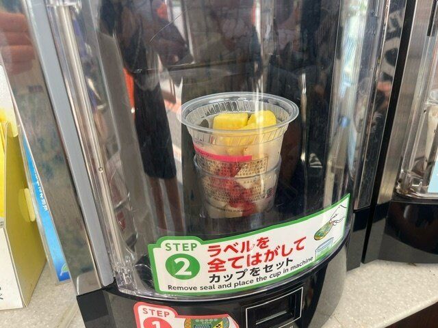 冷凍ケースにはこんな風にカップに凍ったフルーツ等が入ったものが列んでいます。