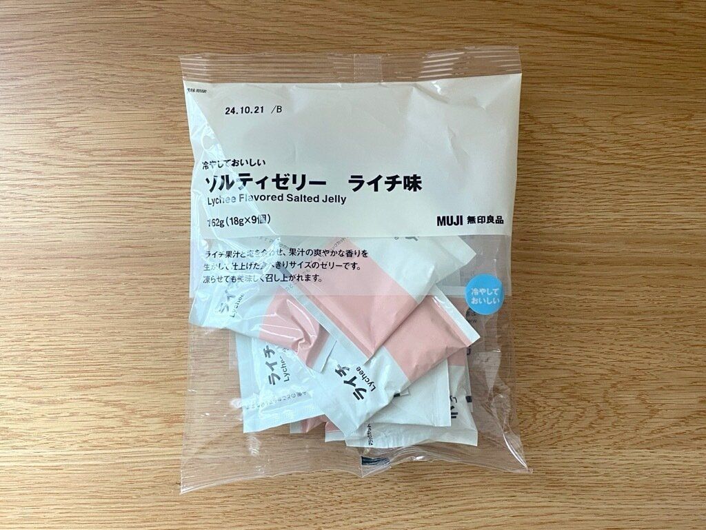 ライチ果汁と塩を合わせた一口サイズのゼリー「冷やしておいしいソルティゼリーライチ味」。常温で販売されていますが、食べる前に冷蔵庫でしっかり冷やすとよりおいしく食べられます。冷凍庫で凍らせるとシャーベットのような食感を楽しめるので、夏の暑い日には冷凍するのもオススメです。