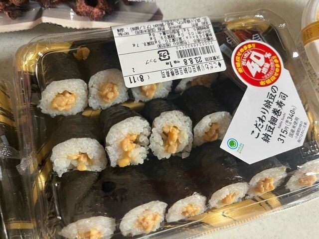 今回の増量では18本に!!これは嬉しい。納豆巻きは自分でもよく作るのですが