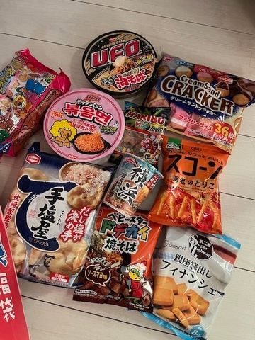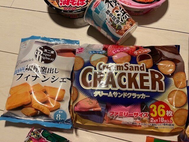 カップラーメンからしょっぱい、甘い系のお菓子まで盛りだくさん。